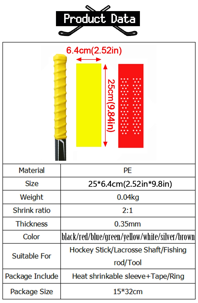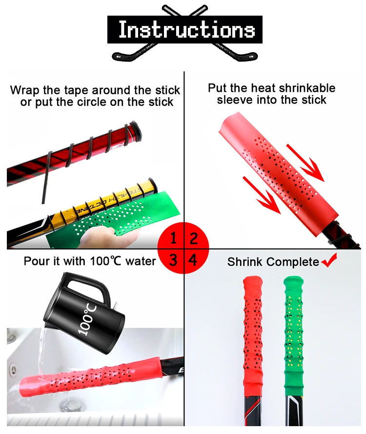 A5:will not. Ours is a protective cover, which shrinks when exposed to heat. After shrinking, it fits tightly with the hockey stick without the need for glue.