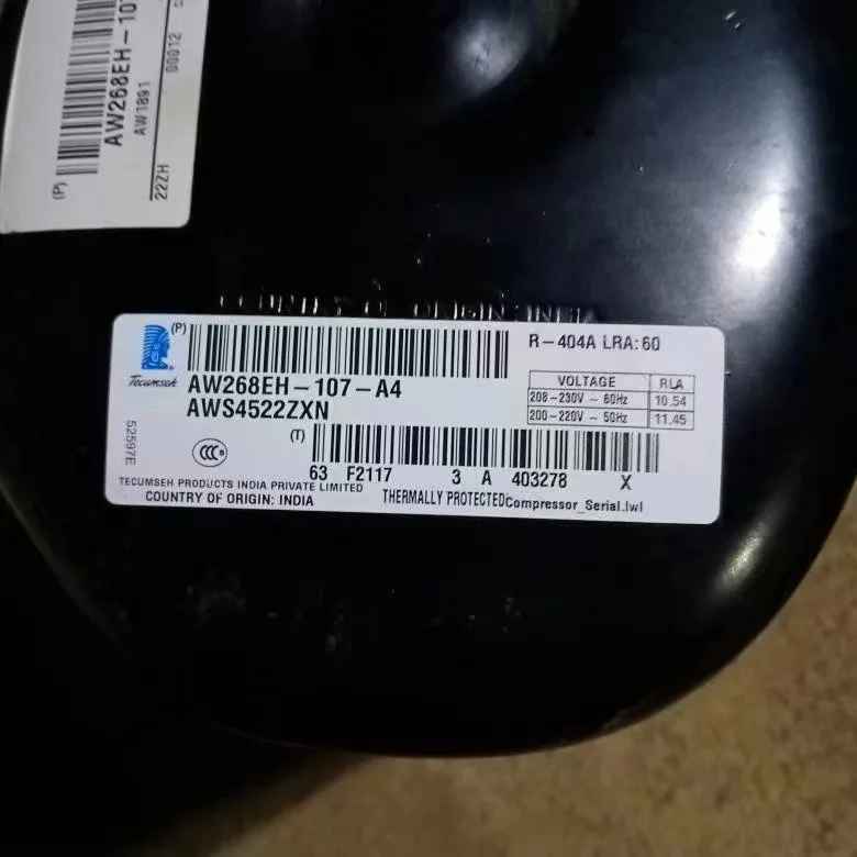 2HP Tecumseh Medium High Back Pressure Compressor R404A AWS4522ZXN 1PH 200-220V 50HZ 208-230V 60HZ -20 Degree To 15 Degree