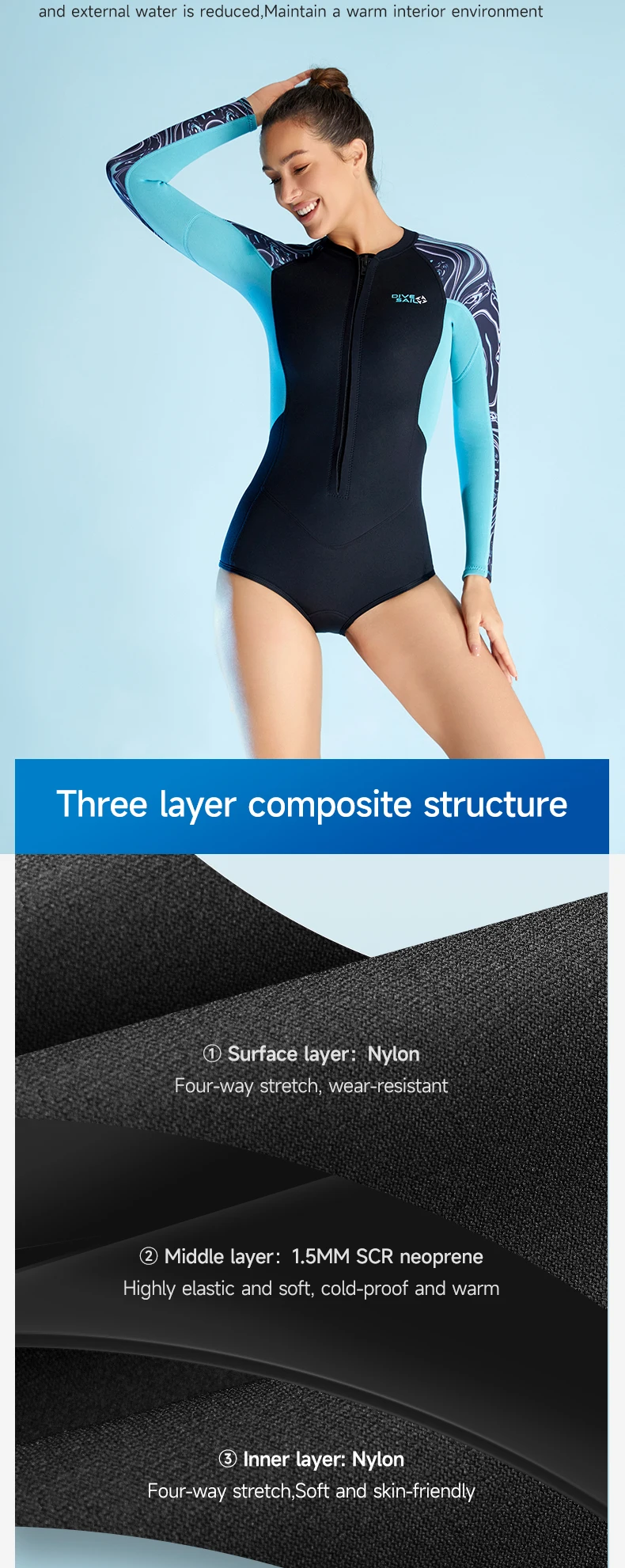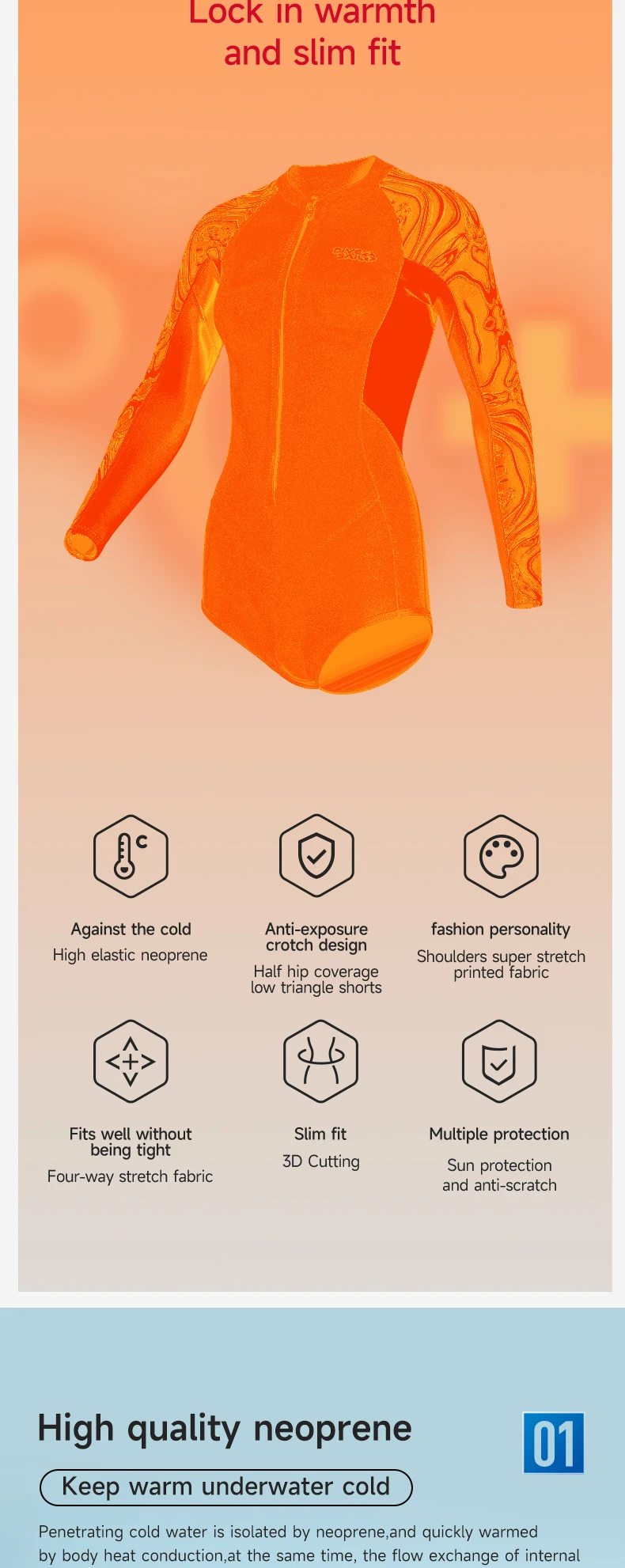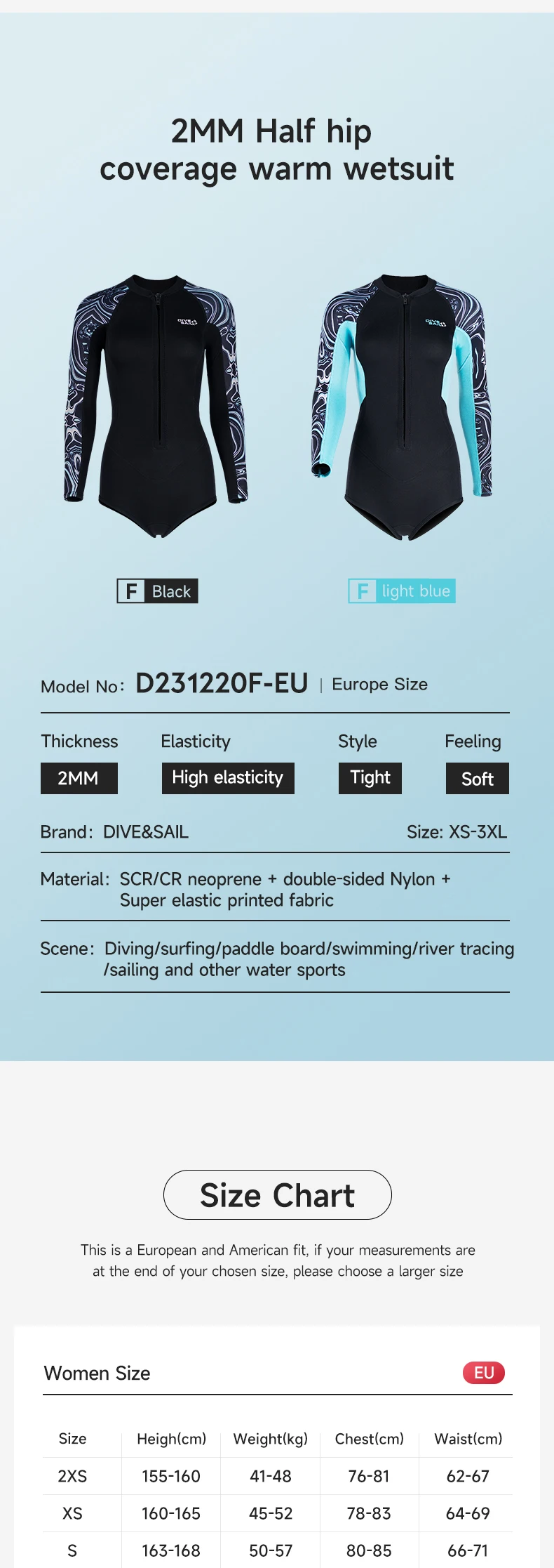 2MM Neoprene Wetsuit Women Long Sleeve One Piece Swimsuit Zip Shorty Wetsuit Surfing Swimming Beach Wear Surfing Suits Keep Warm