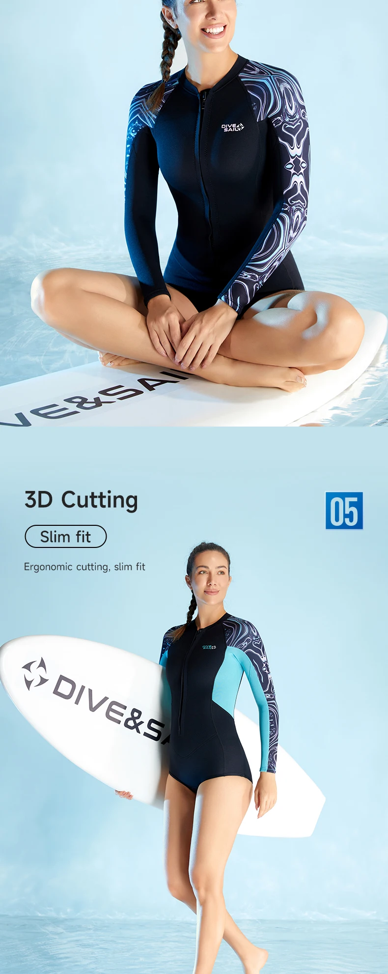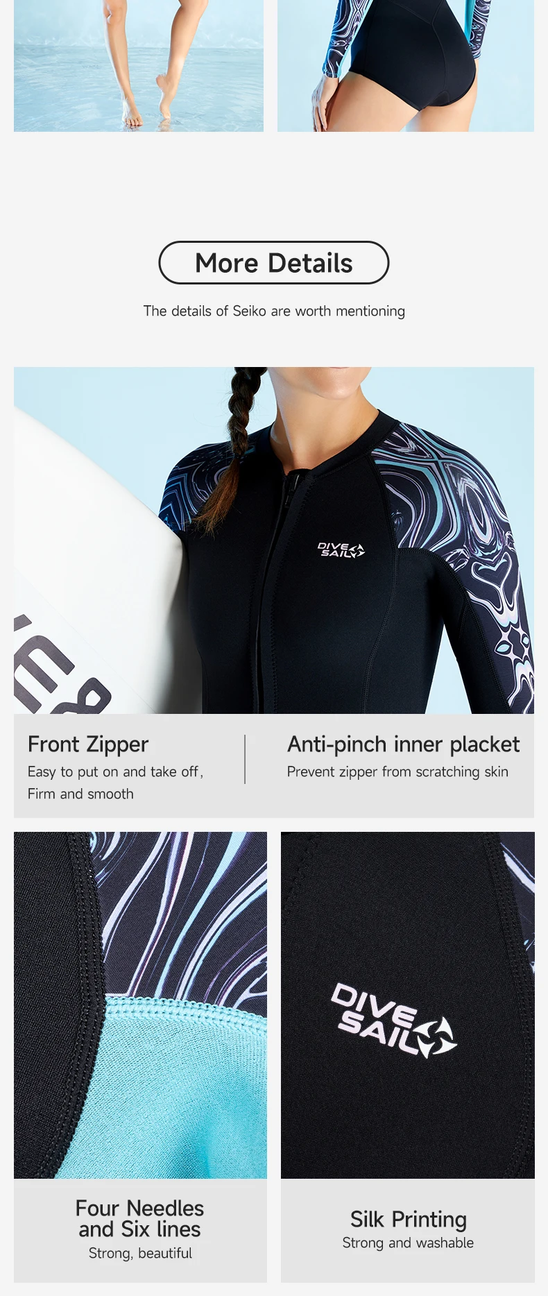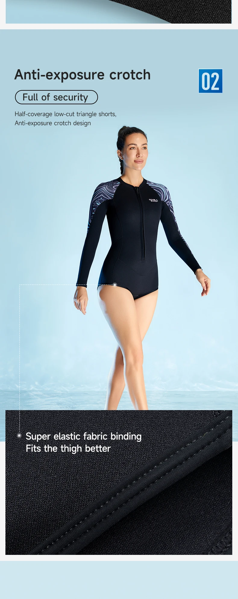 2MM Neoprene Wetsuit Women Long Sleeve One Piece Swimsuit Zip Shorty Wetsuit Surfing Swimming Beach Wear Surfing Suits Keep Warm