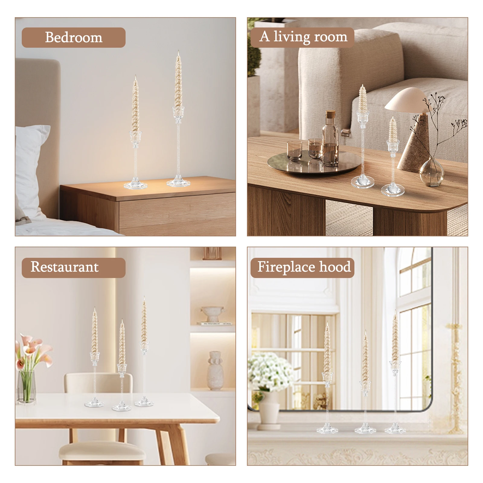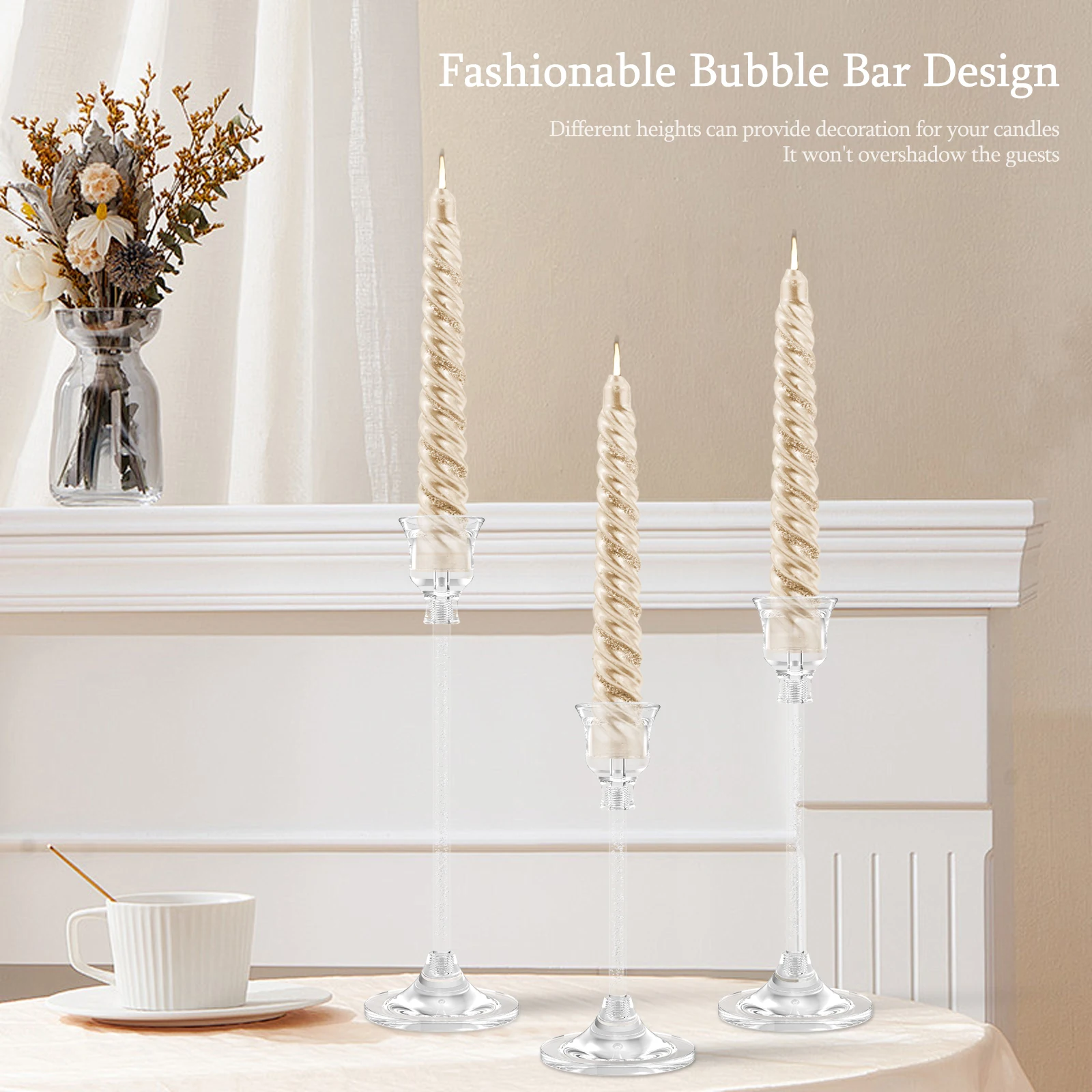Minimalist and Stylish Design: These acrylic candle stick holders are designed with minimalist and stylish spiral rods in different heights to provide decoration for your candles without overpowering them.
