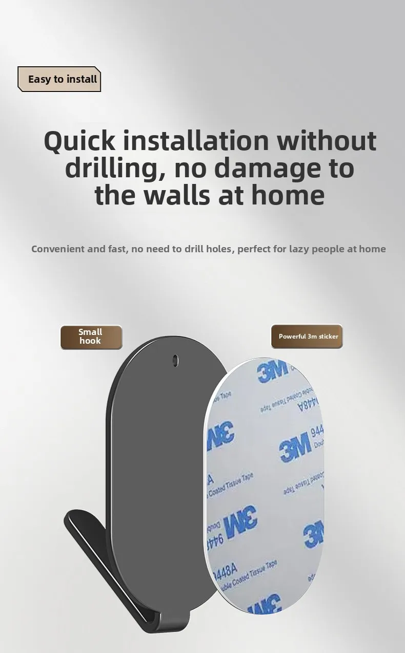 • 3M VHB Adhesive Backing‌: Industrial-grade adhesive strips hold up to ‌30kg‌ (tested per ASTM D4541) without nails/drilling.