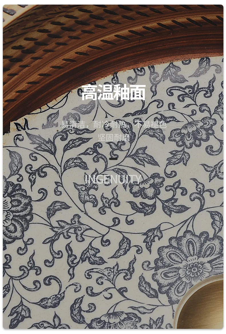European Style Ceramic Washbasin Above Counter Basin Retro Countertop Bathroom Sink Round Bowl Basin with Faucet 41*41*14cm