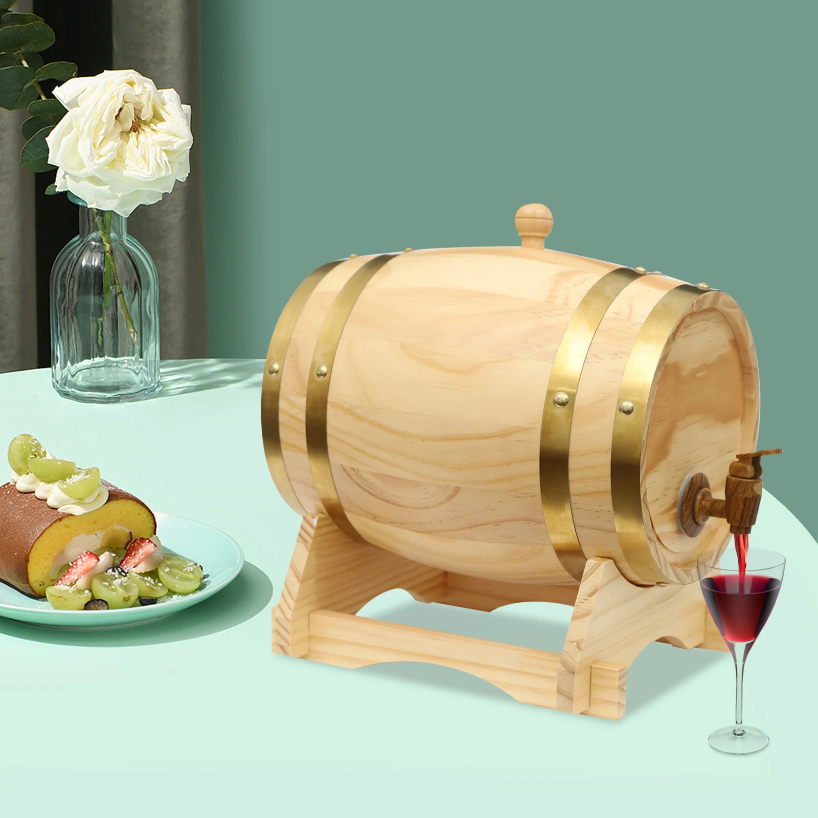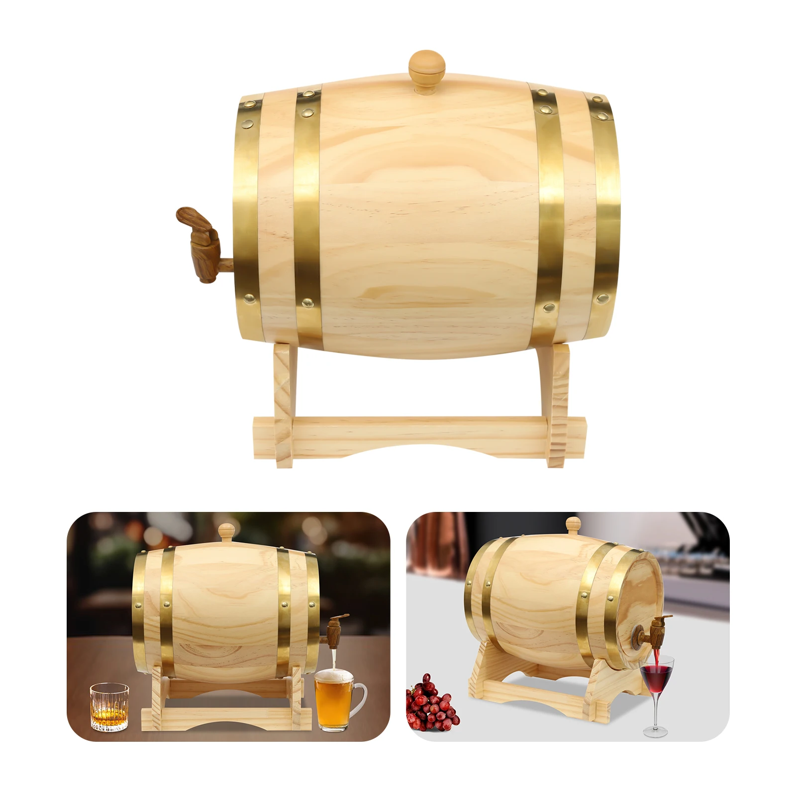5L Wood Wine Barrel Pine Wood Beer Brewing Accessories Household Red Wine Barrel Inner Tank Home Whiskey Decanter