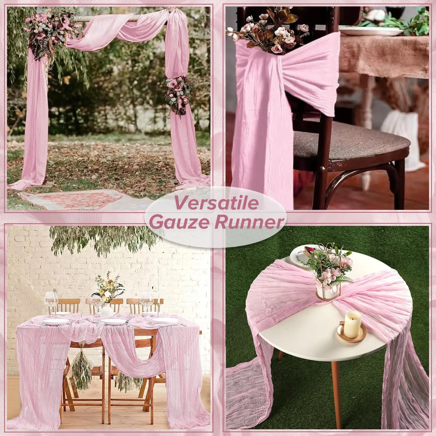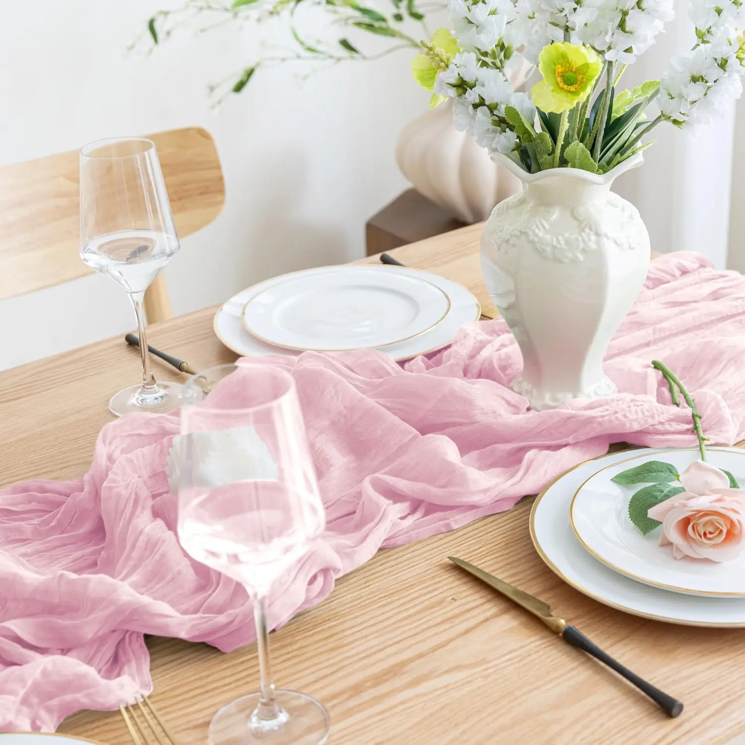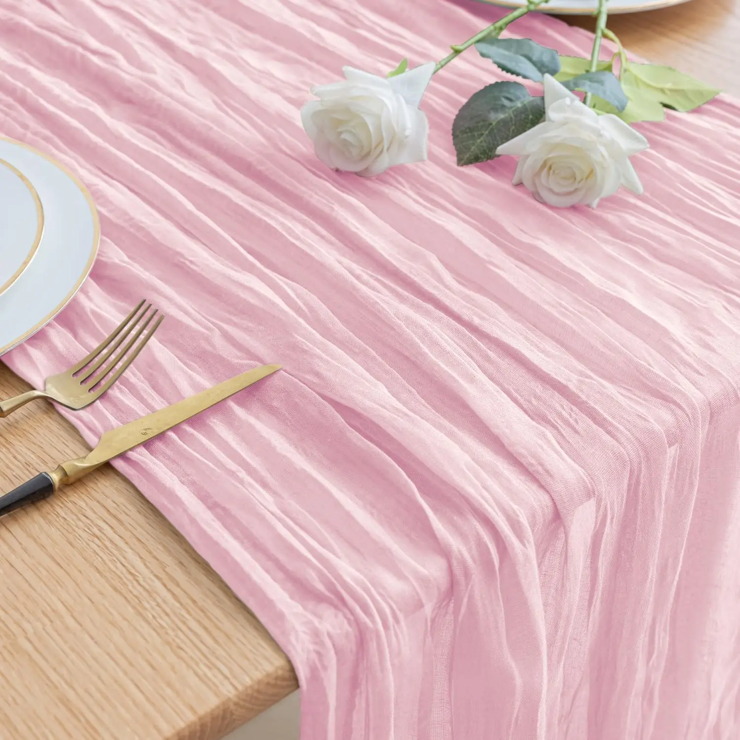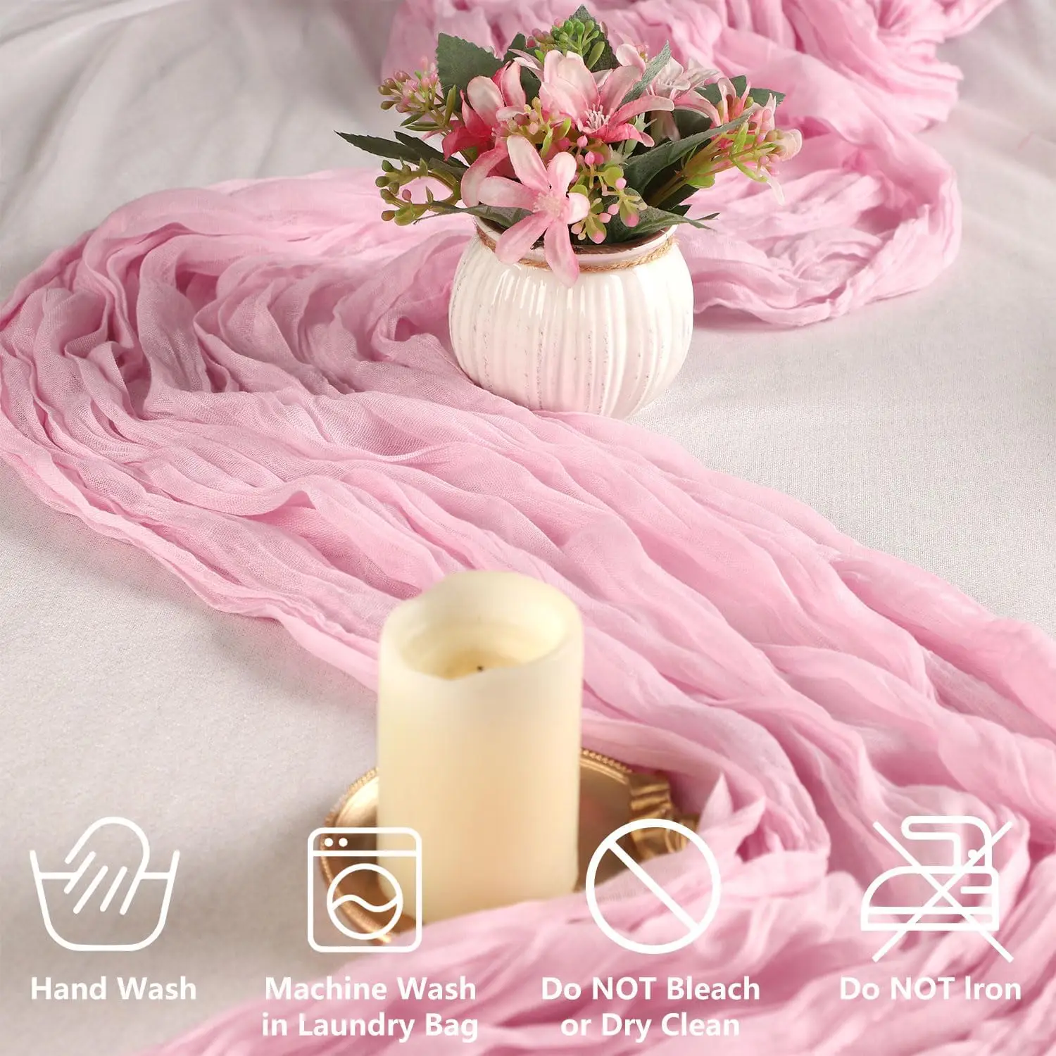 1. The table runners are made of cotton cheesecloth with wrinkle. which is perfect for home decor, wedding table decorations and party table decorations.
