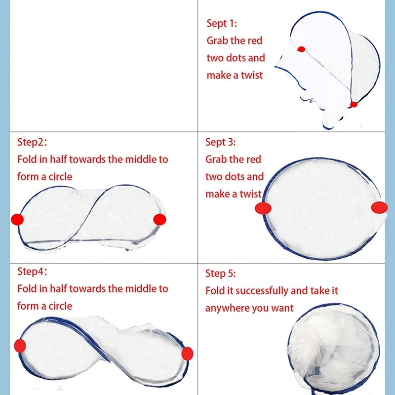 No installation, ready to use: -up mosquito nets are very easy to install because they into place when you take them out of the bag. Also, You just need 5 steps to fold and stored as a circle with a diameter of 20cm.
