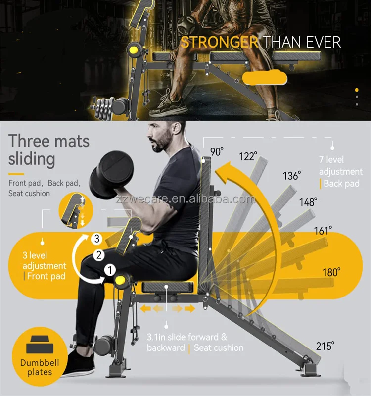 - [Effective Full Body Workout]: This bench for weight lifting can help complete anaerobic exercise in sitting, supine, reclining and other states. It has an irreplaceable training auxiliary function for shoulders, arms, back, chest, legs and other parts that are difficult to exercise.