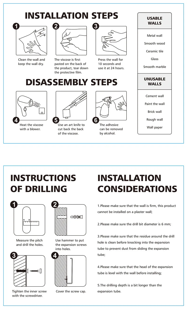 •Wide Application: Suits on a variety of smooth surfaces, like ceramic tile, wood, glasses, metal surface (Not suitable for unsmooth wallpaper.) It is deal for foyers, hallways, bathrooms, kitchen, bedrooms, closets, living room, toilet, office, showrooms etc.
