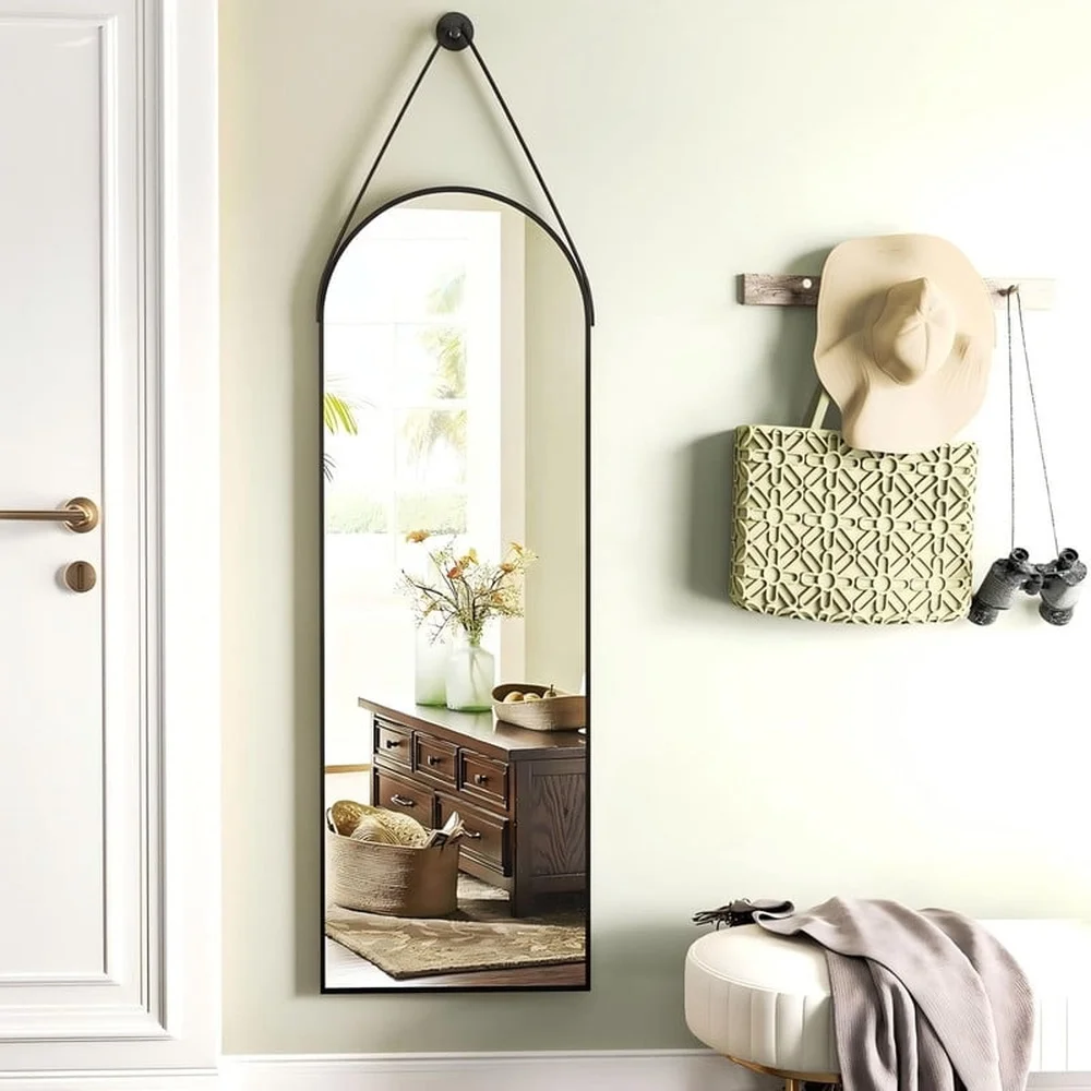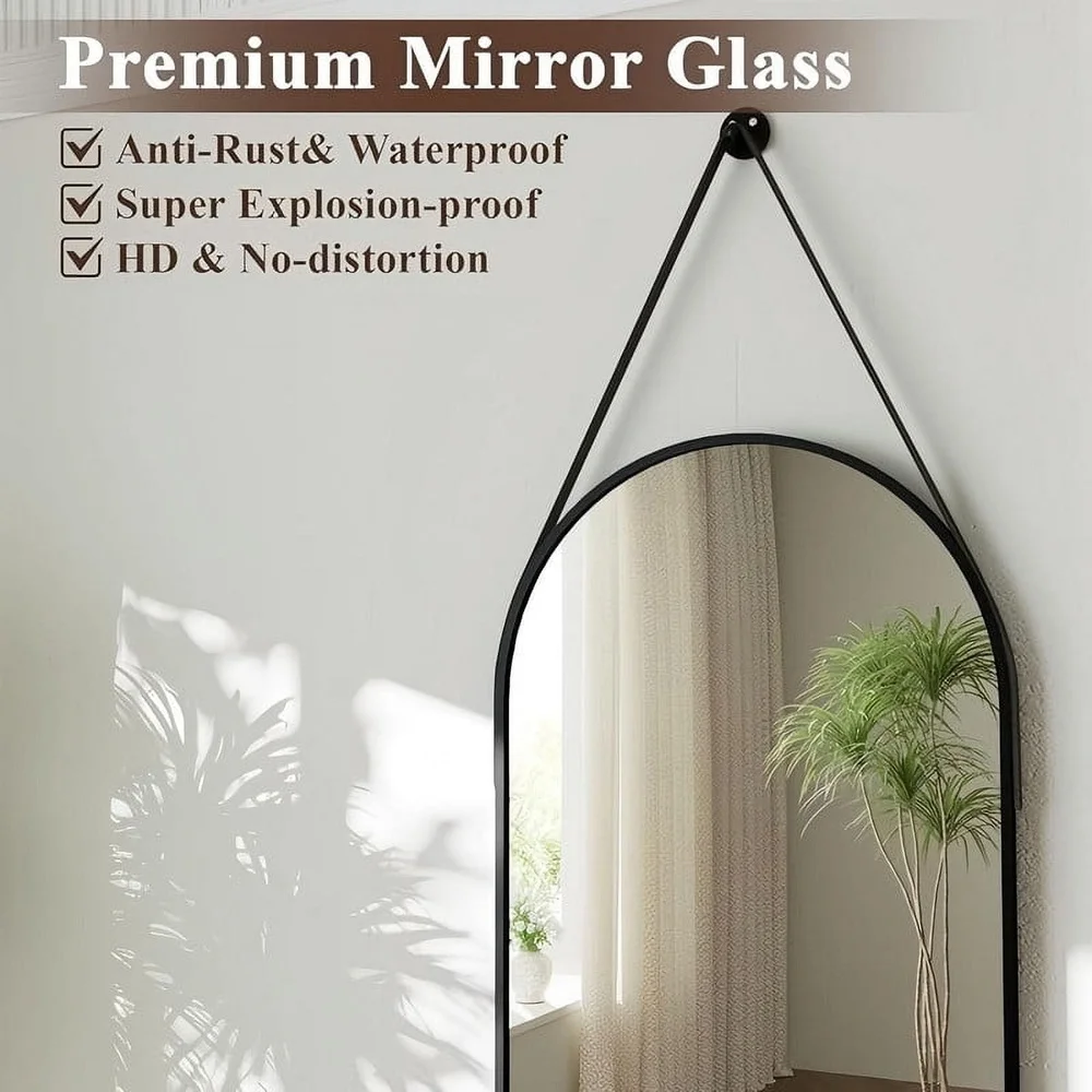 This arch-shaped aluminum alloy door mirror combines elegance with functionality. Crafted from high-quality aluminum alloy, it provides both a sturdy frame and a sleek aesthetic. The mirror’s unique arch design offers a modern touch, while the durable aluminum ensures long-lasting use. Whether installed in your entryway, bedroom, or hallway, this mirror enhances any space with its stylish and contemporary look.