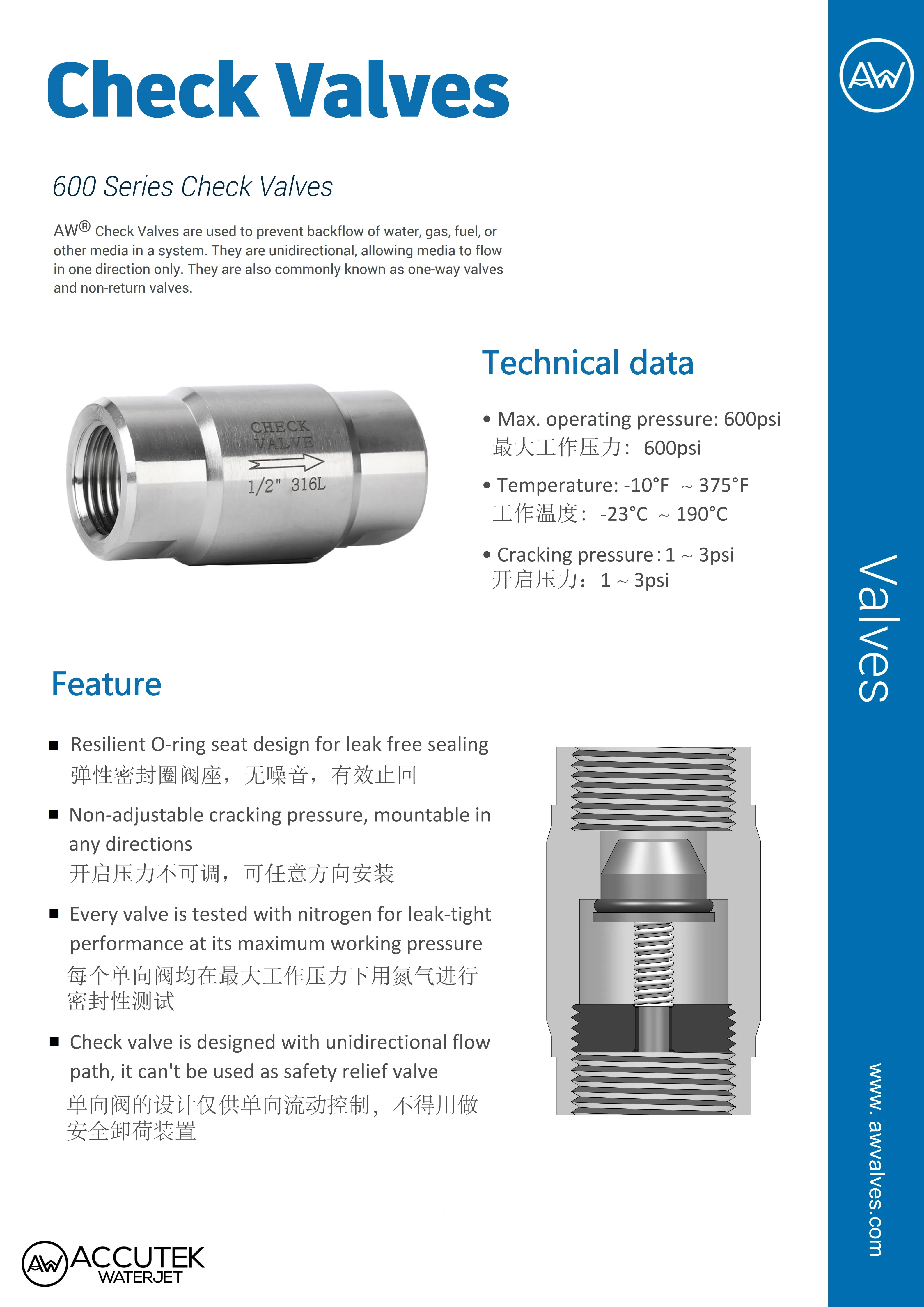 AW® 304 316 Stainless Steel Check Valve Female Thread BSPP One Way Non-retrun Valves 1/8″ 1/4″ 3/8″ 1/2″ 3/4″ 1″2″ 600psi Price range: $21.25 through $847.24