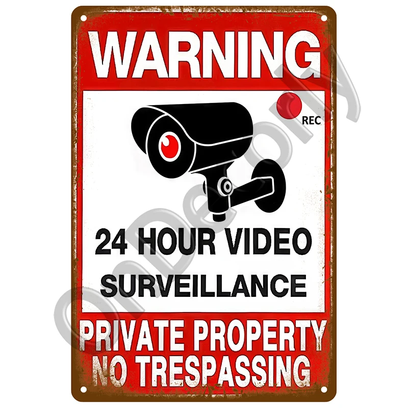 Bar Warning CCTV Tin Signs Vintage Metal Sign Poster Plate Wall Decor Art For Garage Cafe Plaque Notice 24 Hour Security Camera