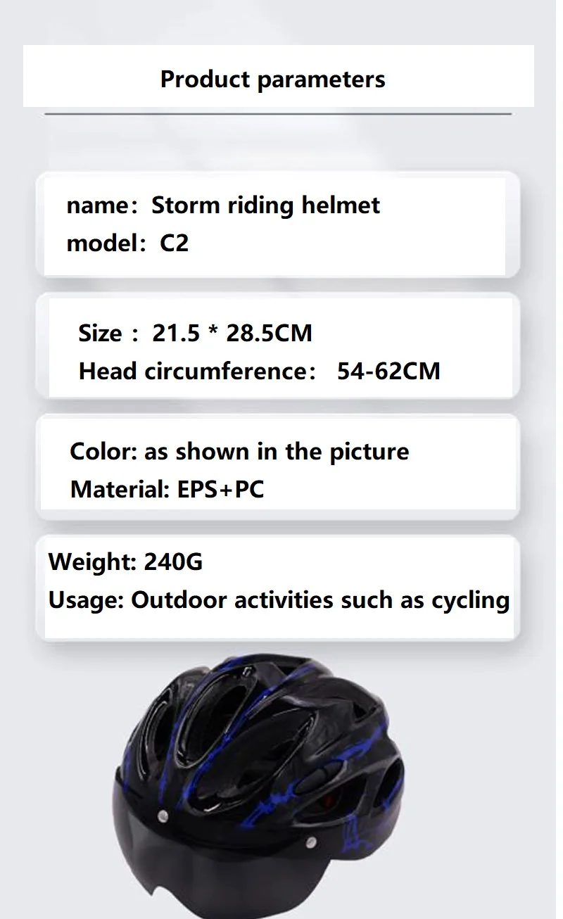 Packaging: One helmet+cycling sunglasses (detachable)