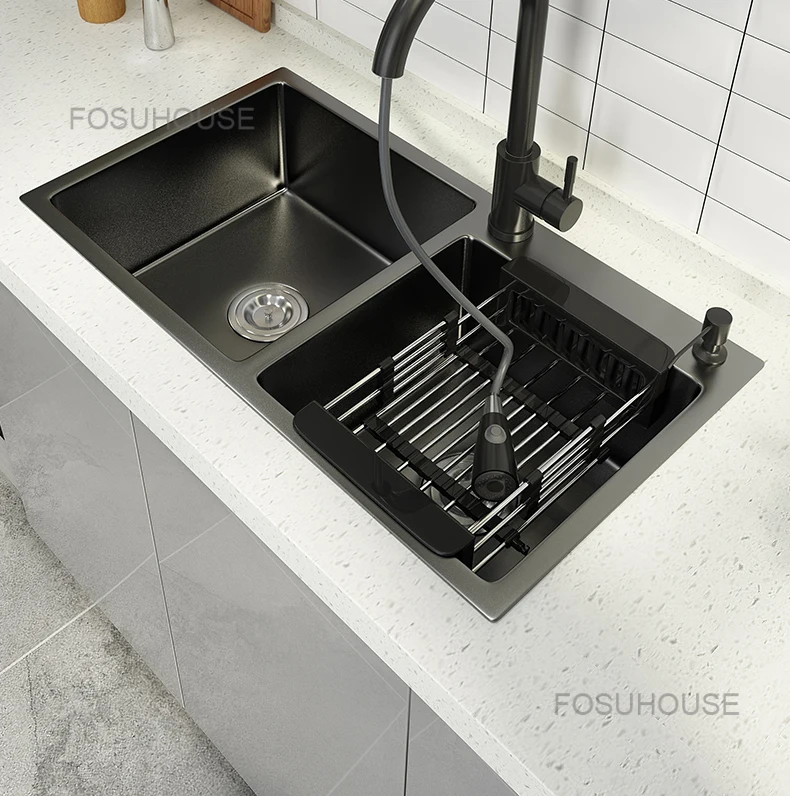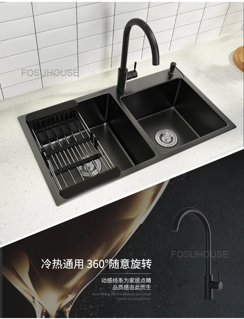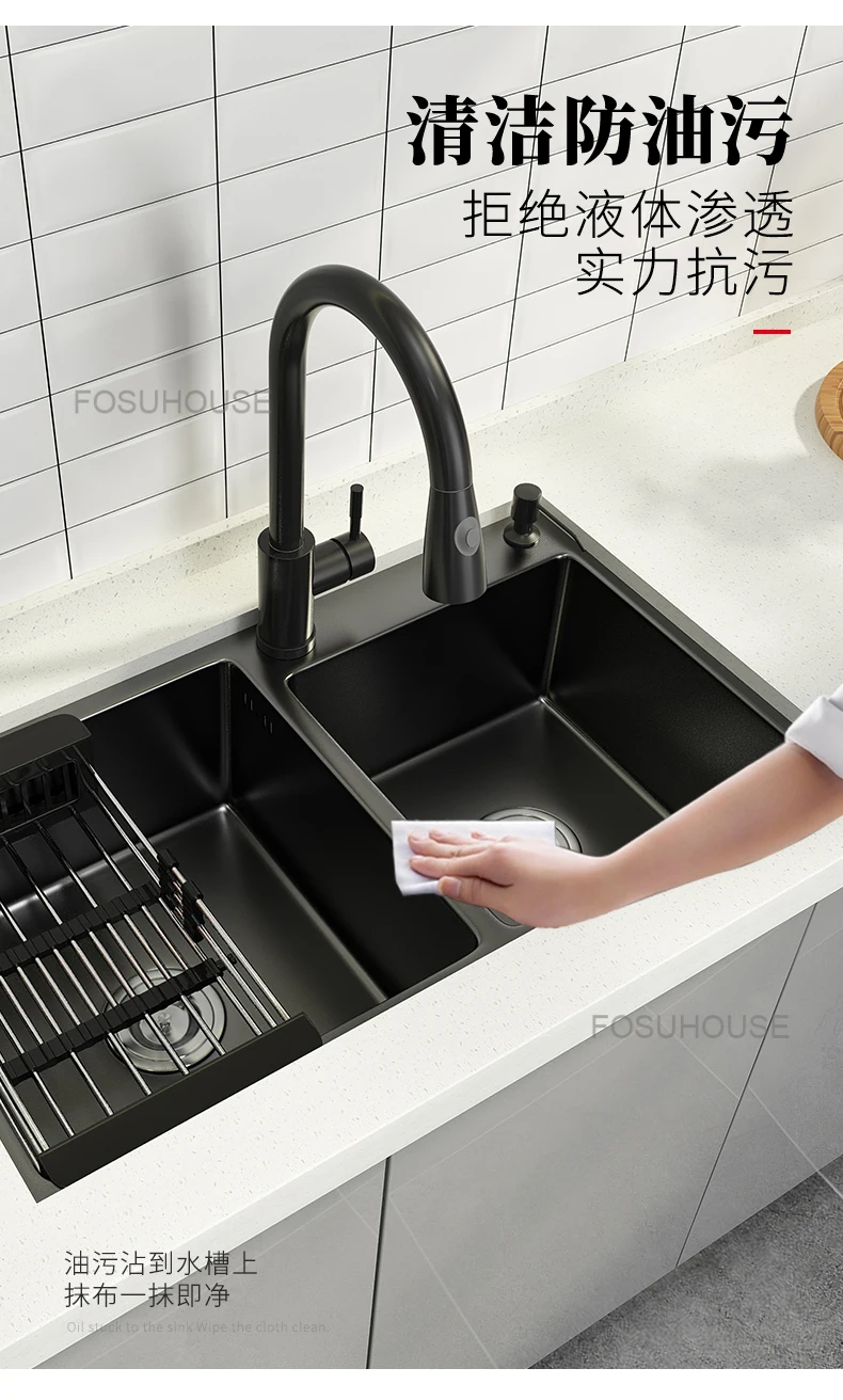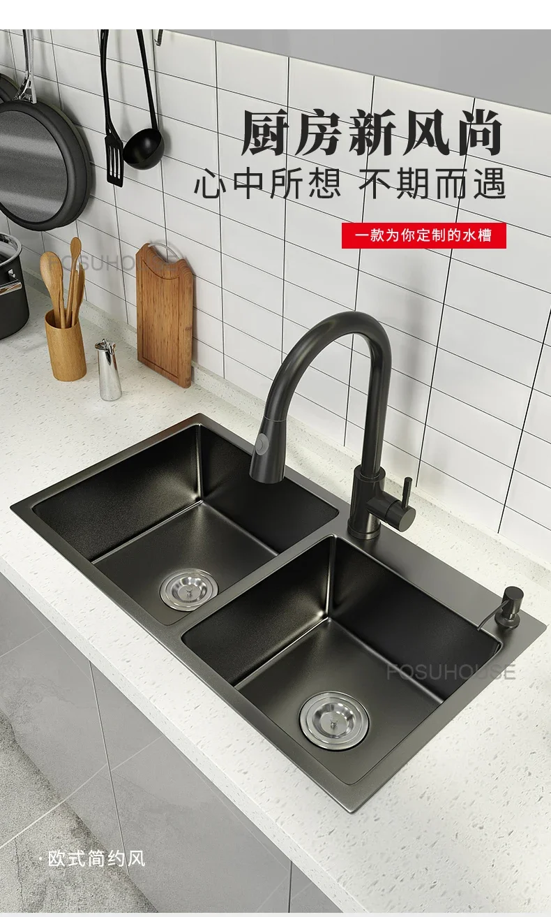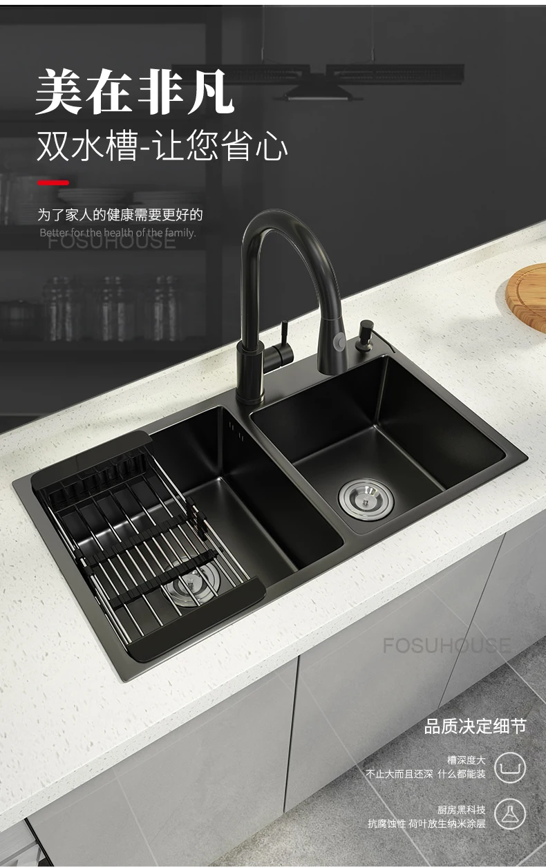 Black Home Nano Stainless Steel Kitchen Sink, Double Sink Hand Thickened 304 Sink Dishwasher Set kitchen fixtures Price range: $761.62 through $1,057.87