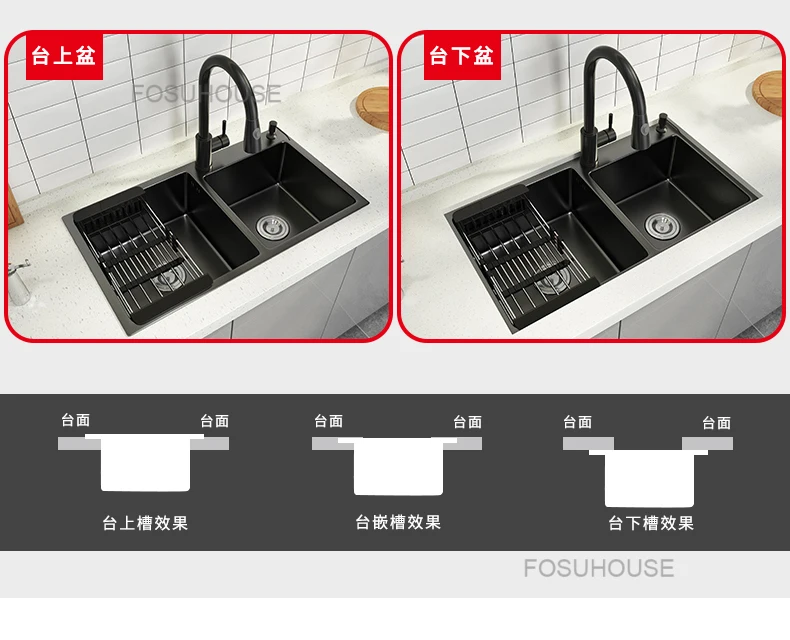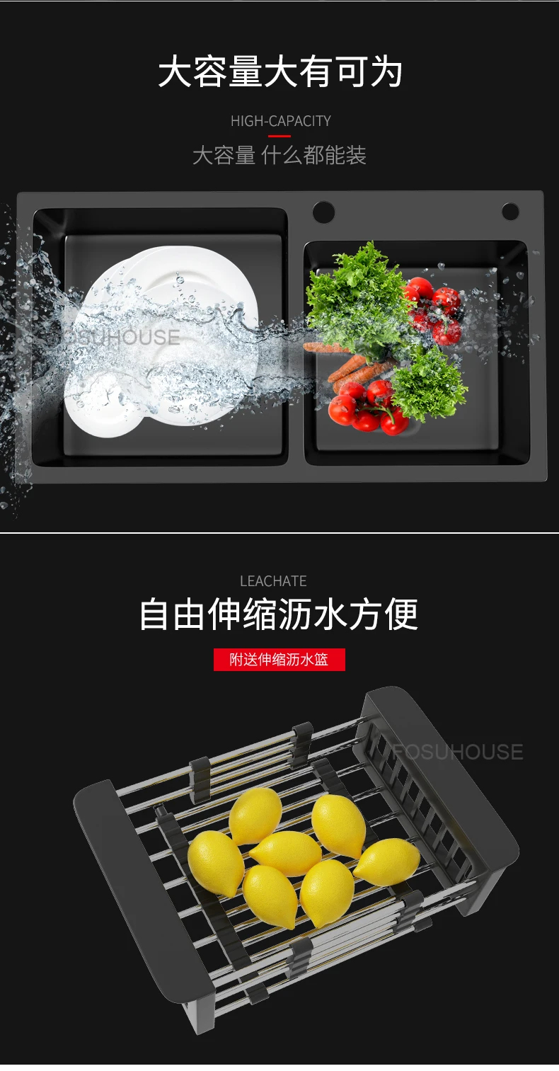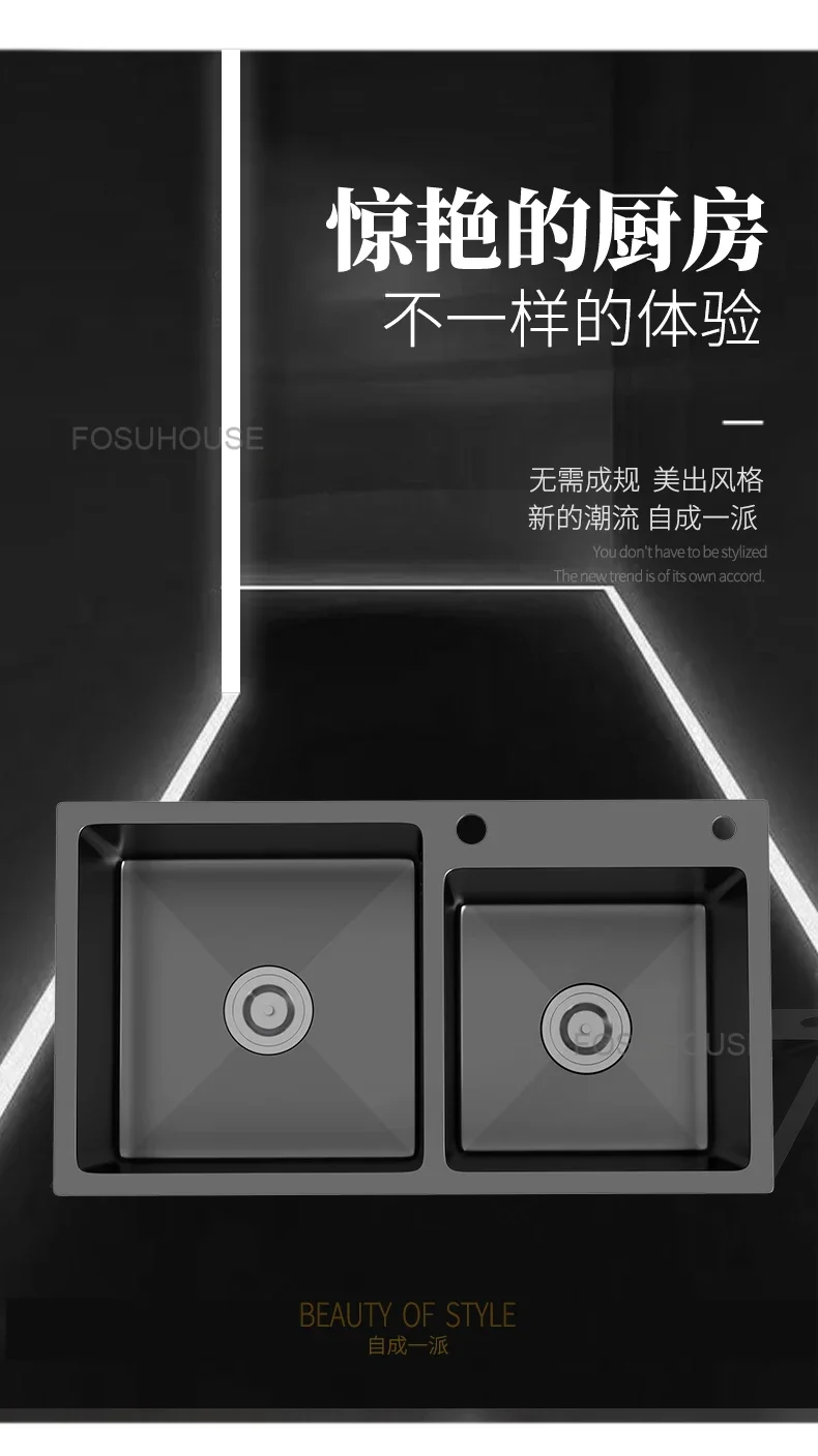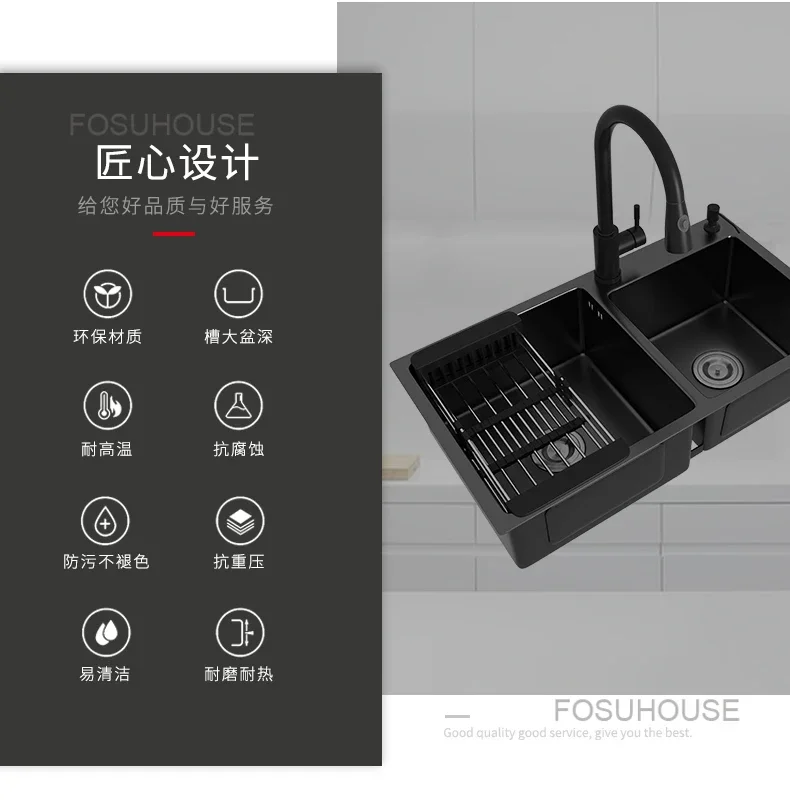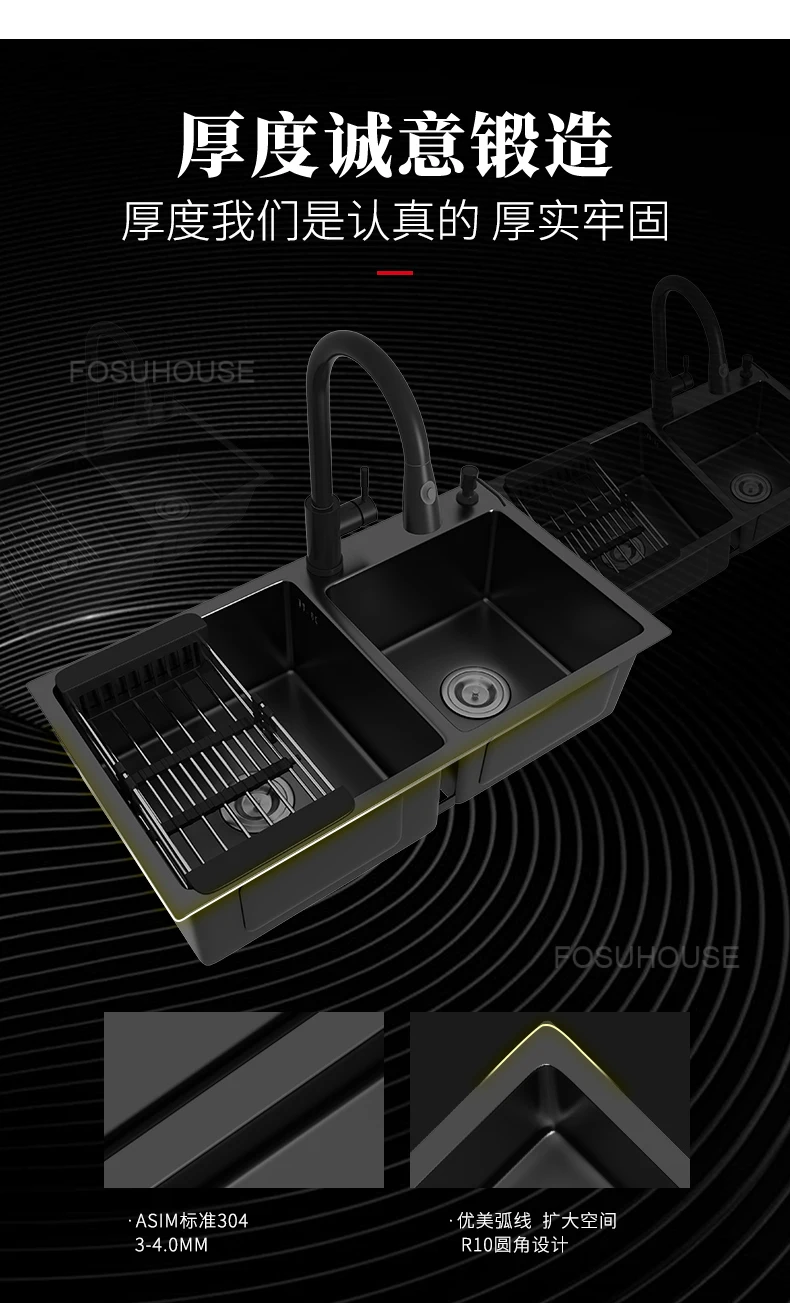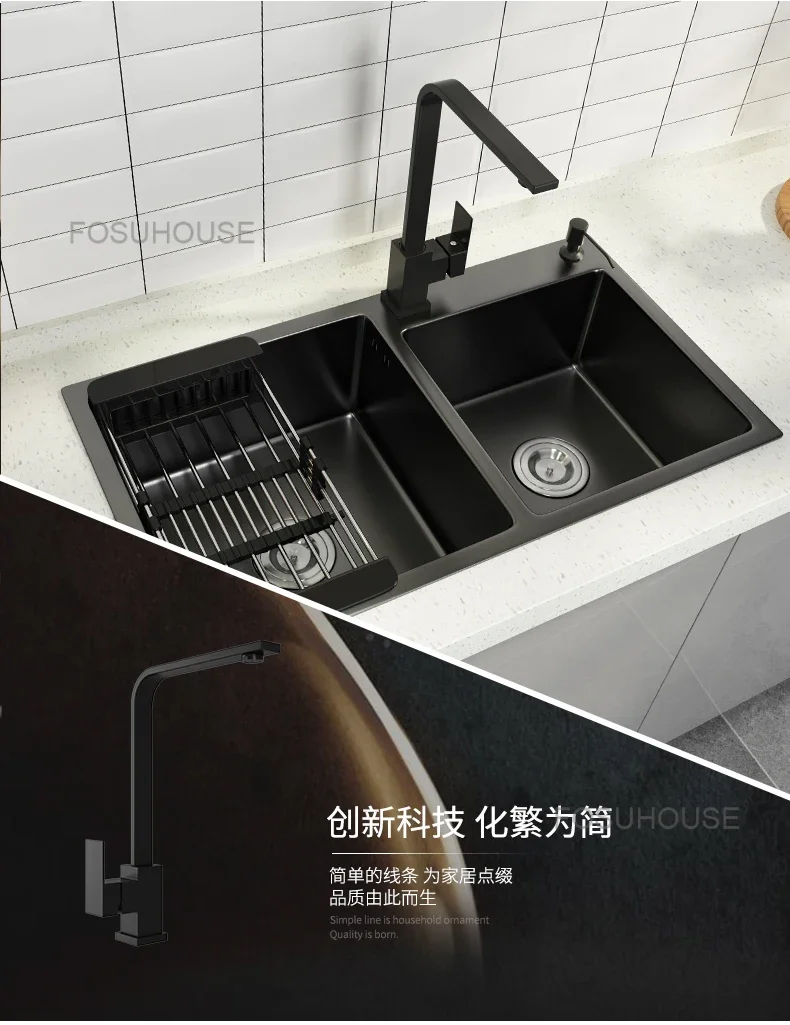 Black Home Nano Stainless Steel Kitchen Sink, Double Sink Hand Thickened 304 Sink Dishwasher Set kitchen fixtures Price range: $761.62 through $1,057.87