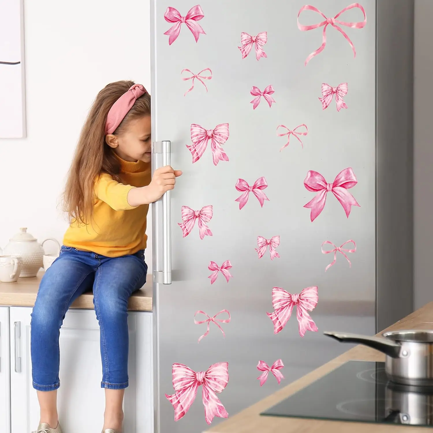 Blue Pink Bow Wall Sticker Girl Room Kitchen Watercolor Bow