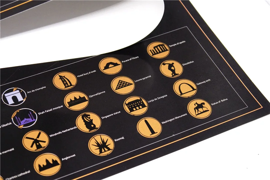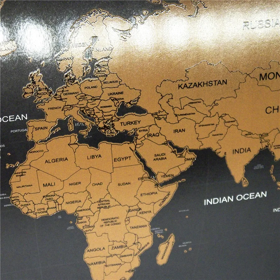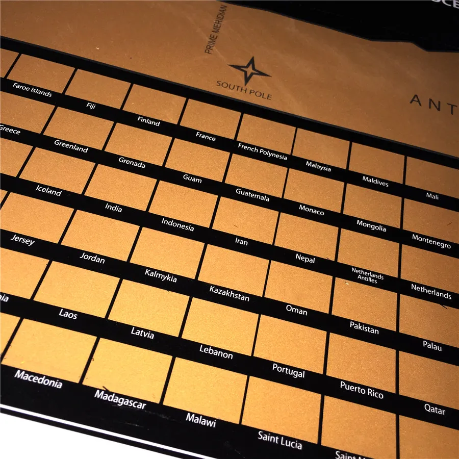 Allows you to experience a more complete view of the world on the map. The top of this high-quality scratch-coated map is a layer of gold-plated flake