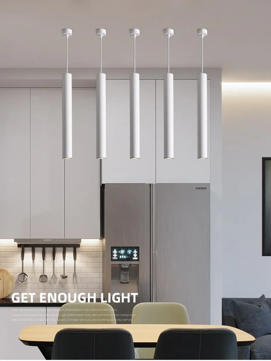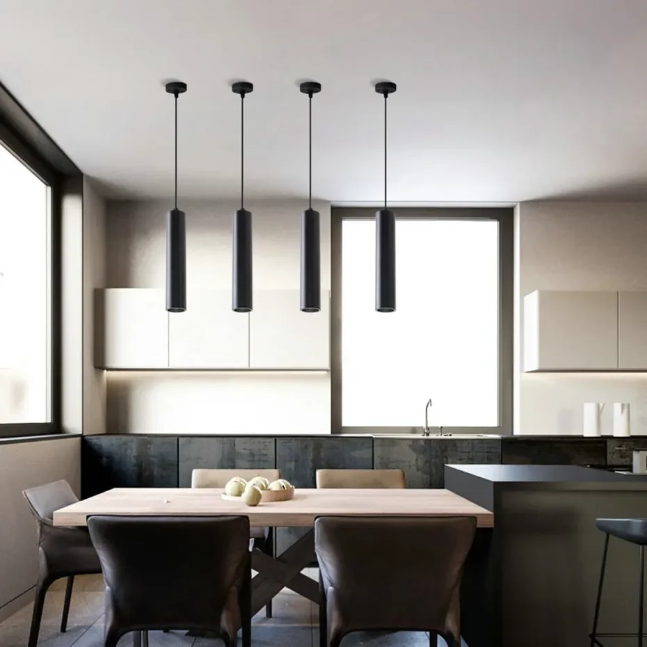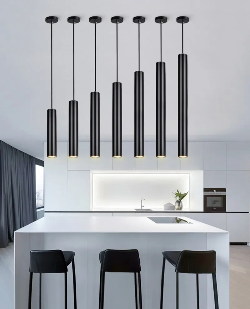 Dimmable Modern Pendant Led Light Long Tube Kitchen Island Dining Room Lights Fixtures Cylinder Pipe Hanging for Home Decor