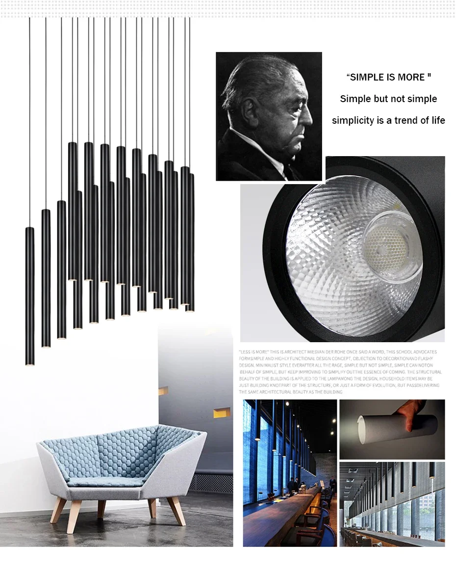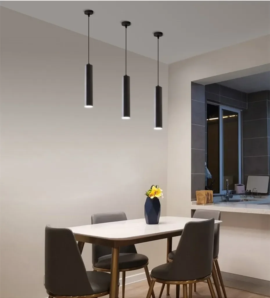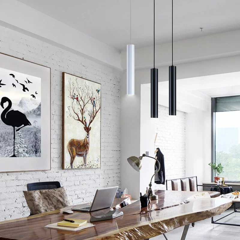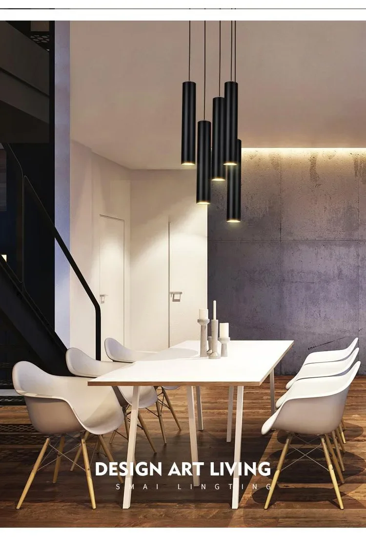 Dimmable Modern Pendant Led Light Long Tube Kitchen Island Dining Room Lights Fixtures Cylinder Pipe Hanging for Home Decor