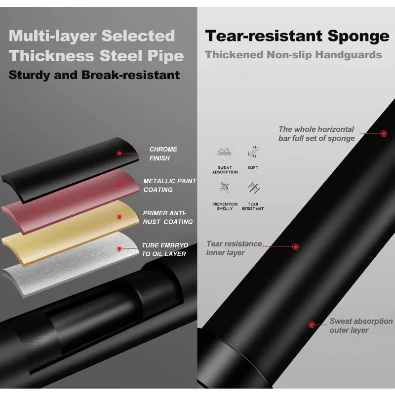 - 【Upgraded Security – Eject Protection】The two ends of this Rhinosport pull up bar are our original design of the spring automatic extrusion setting. When the gravity presses down, the upper and lower springs automatically squeeze against the wall to achieve a non-slip protection effect