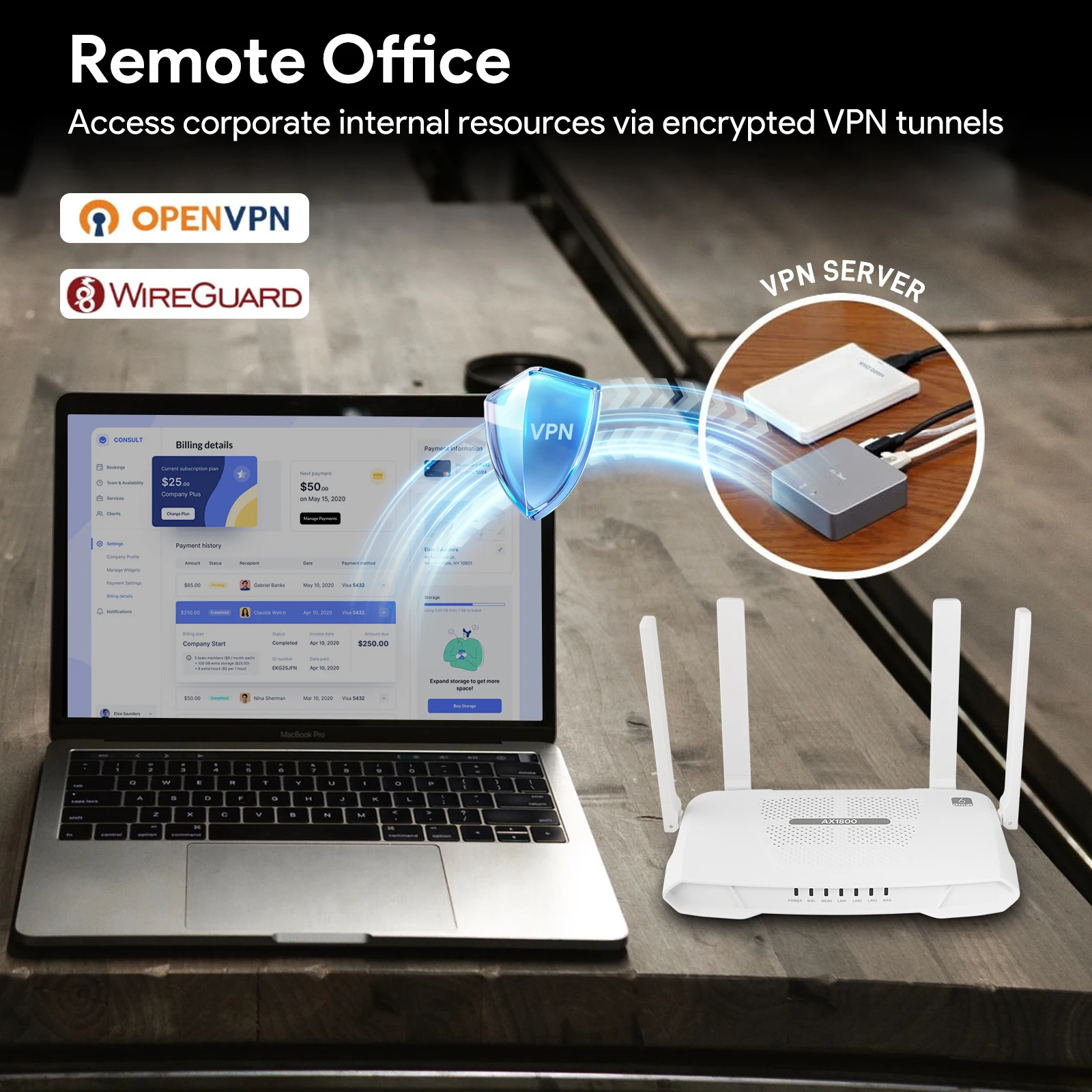 Access corporate internal resources via encrypted VPN tunnels