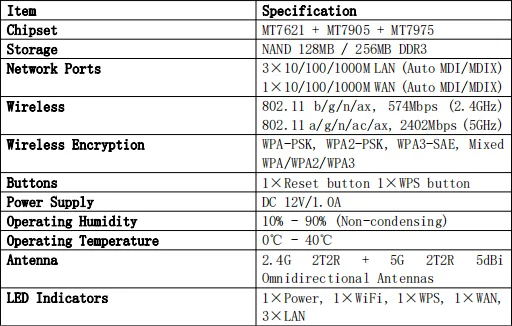 - WAN Ports: 1 x10/100/1000Mbps