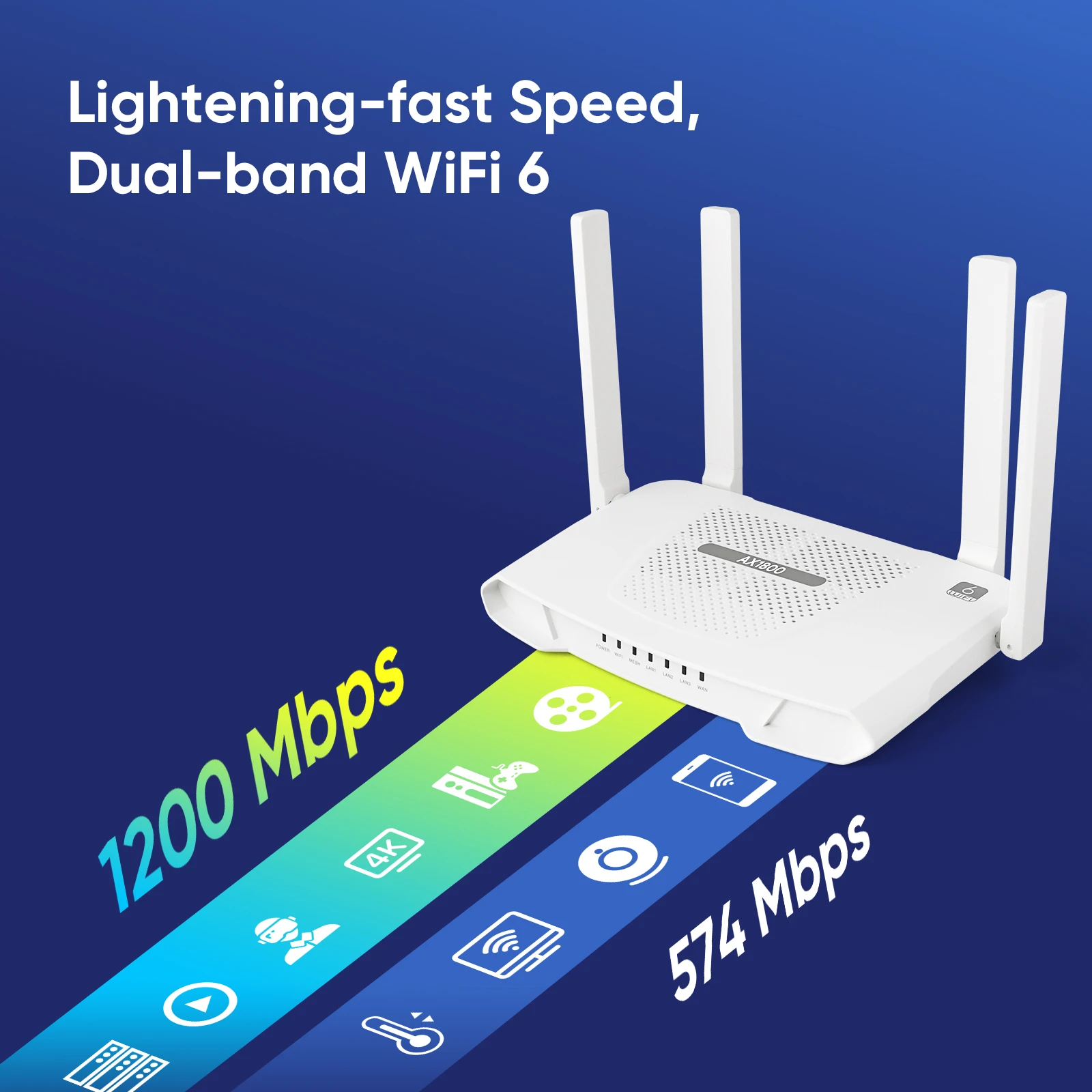 「Lightening-fast Speed, Dual-band WIFI 6」