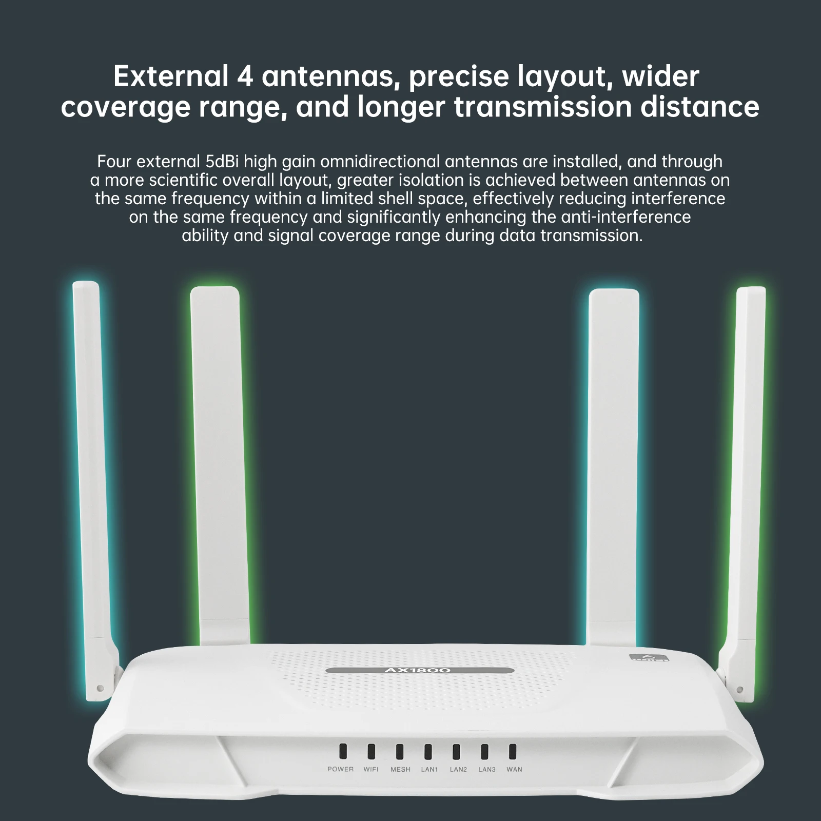 「External 4 antennas , precise layout , wider coverage range , and longer
