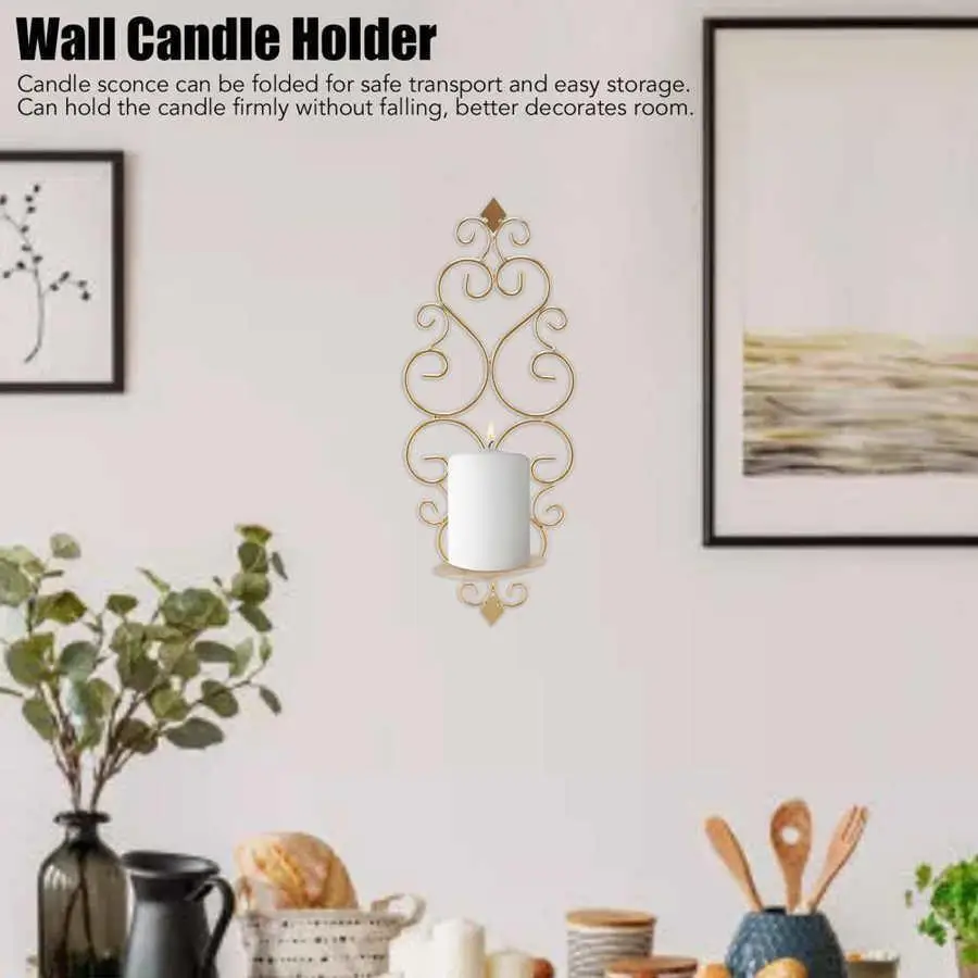 Candle Holder Iron Candlestick Folding Wall Mount Base Sconce Home Decoration for Room