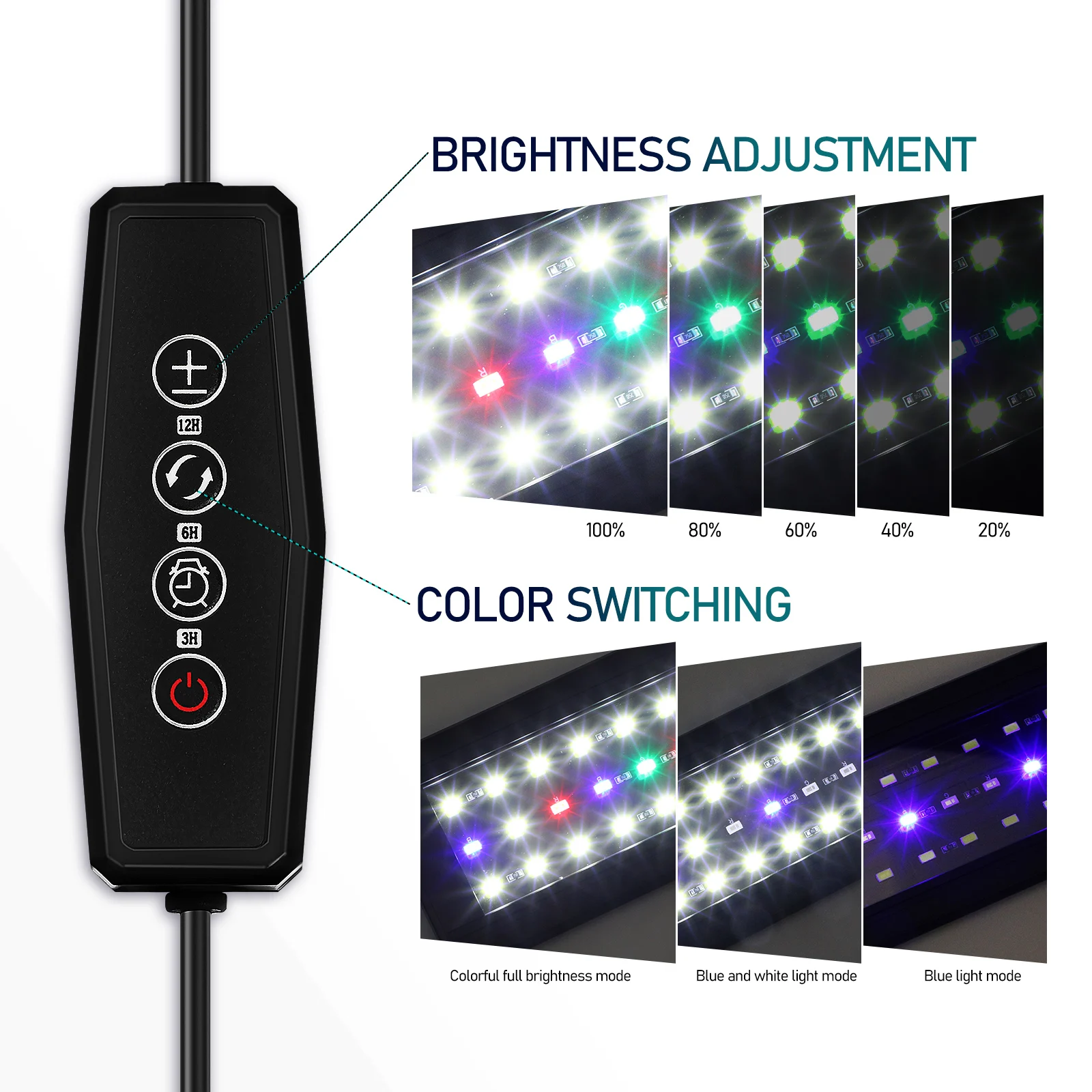 -Modes: White, blue, red, and ; lights; blue lights fish tank lamp