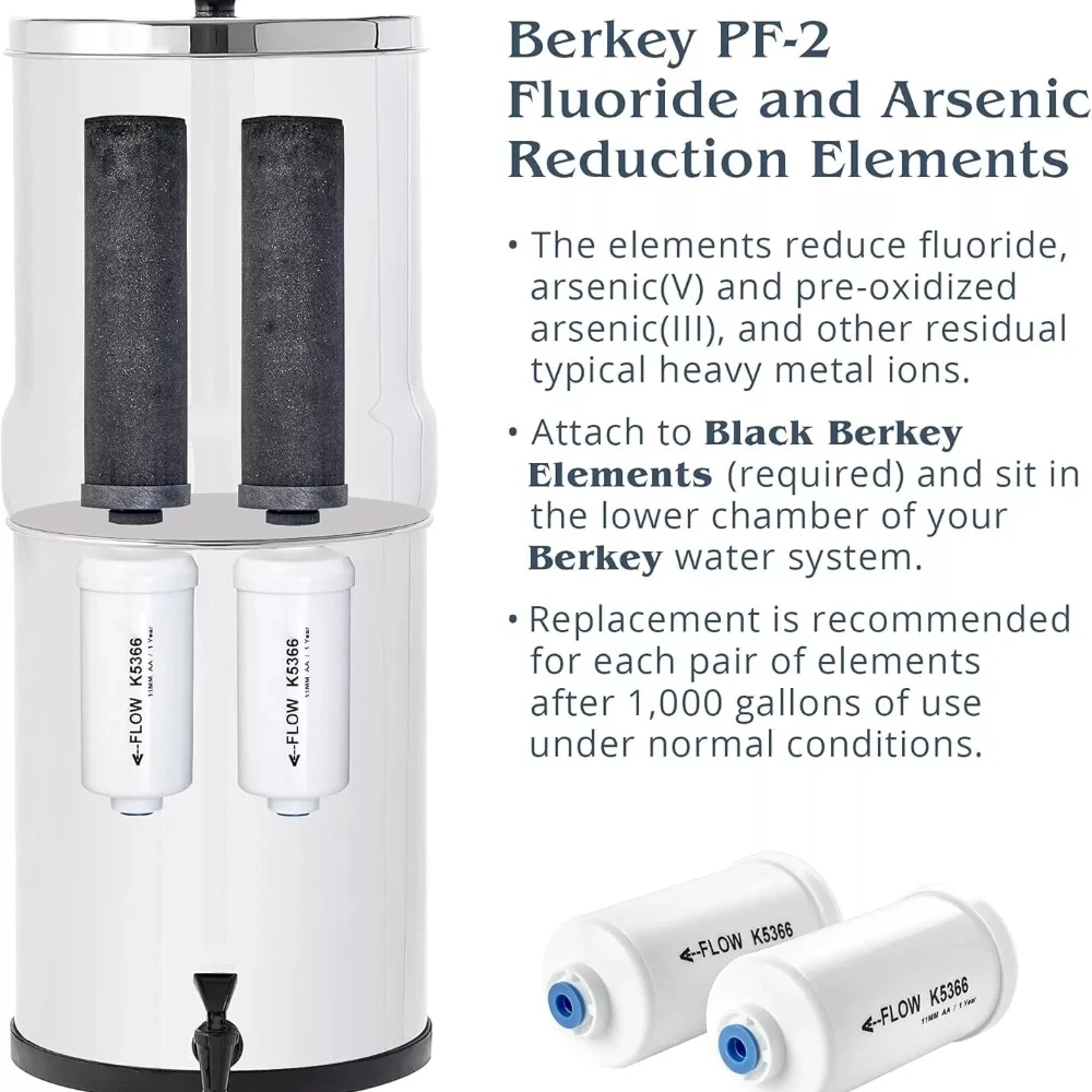 Compatible with: Replacement for Berkey PF-2 Fluoride Filters Combo Pack, Travel, Big, Royal, Imperial and Crown Berkey Gravity filter system. And it is compatible with Waterdrop,Purewell, FACHIOO Gravity-fed Water Filter System.Â