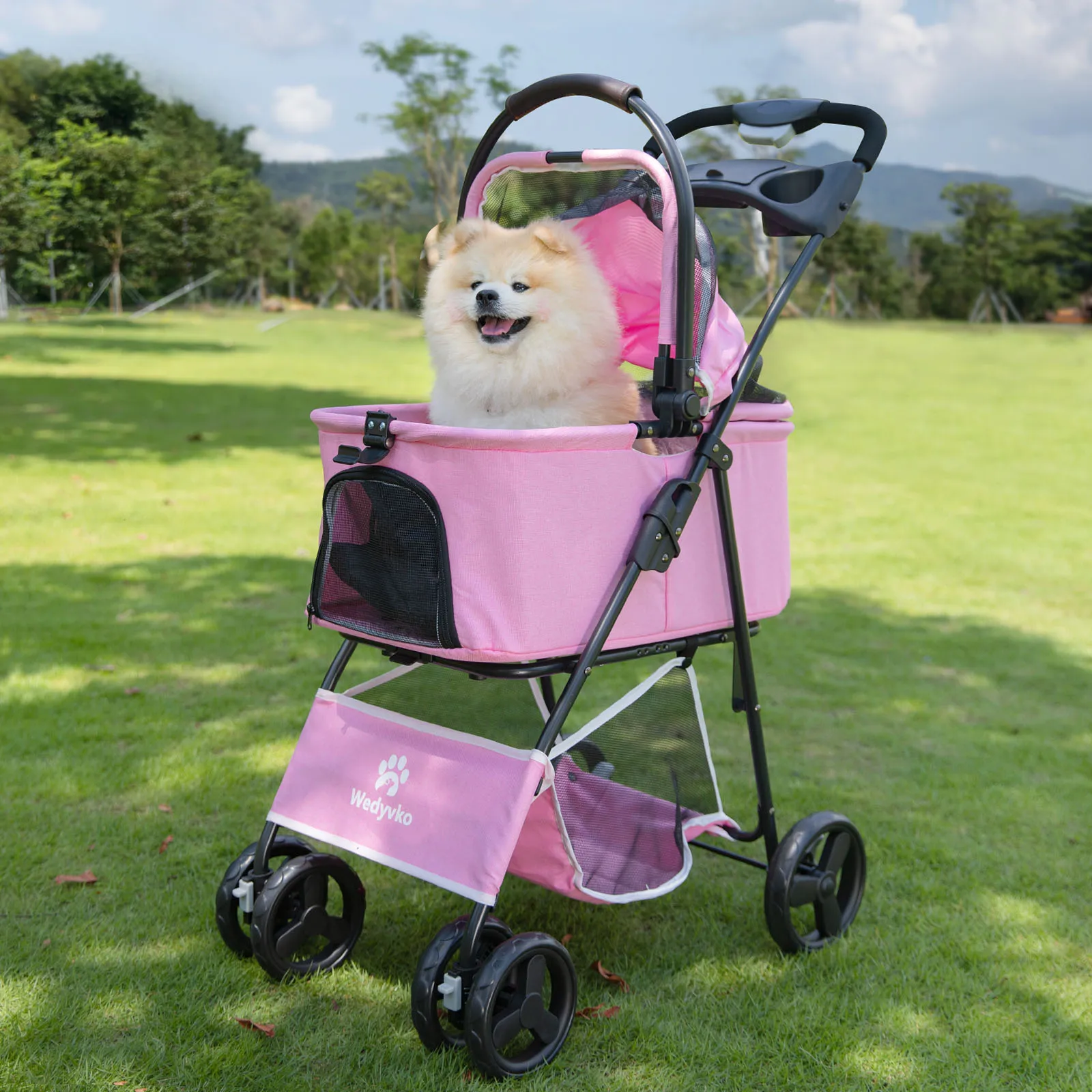 1. Unfold the carriage, open the zipper, fix the support rod onto the buckles.