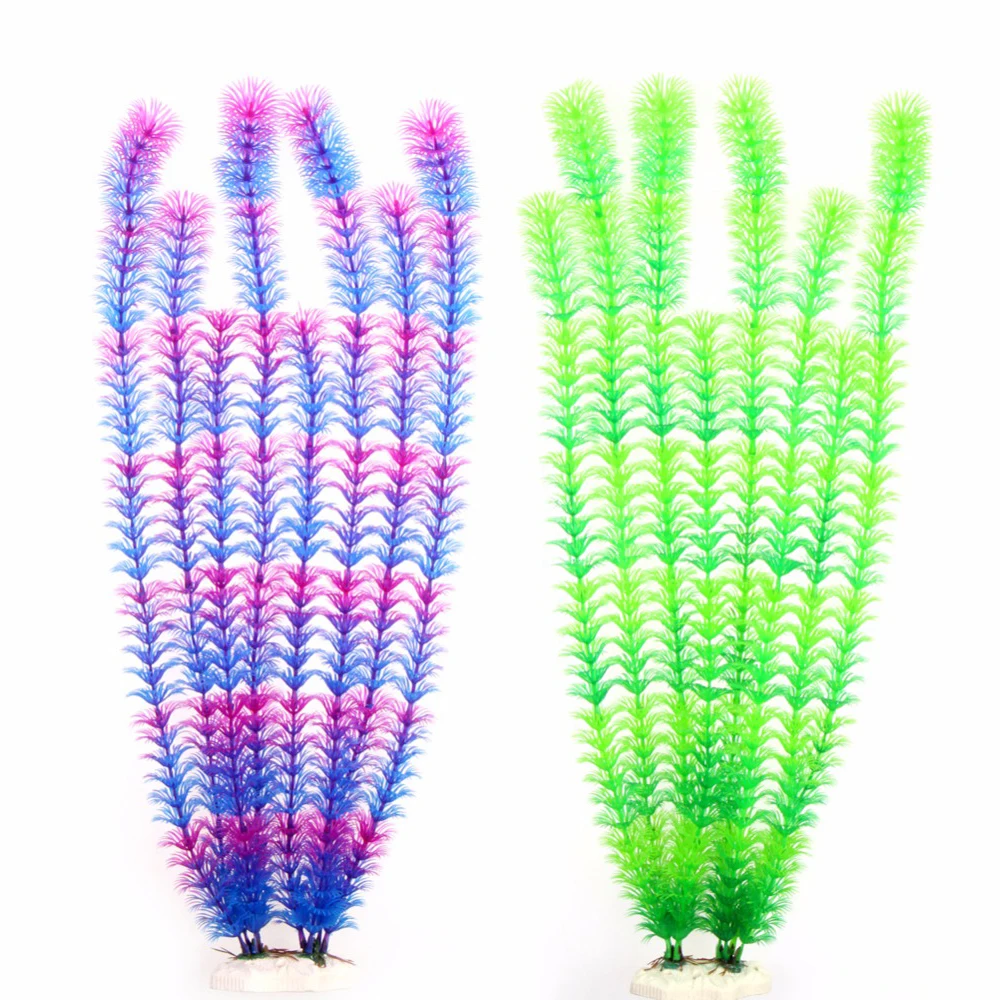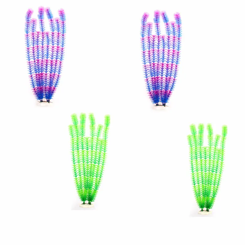 Simulation of grass leaves and grass roots are made of environmentally friendly PVC material does not affect the water quality, not with other plants like the appearance of color spray caused by fading, and affect the water quality. But the use of coloring into the raw materials and then made of stereotypes, the color will be much better, there is no fade.