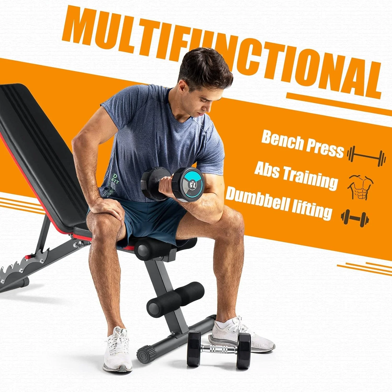 * 銆怮uick Adjustment & Safe Locking銆� 7 backrest position adjustment workout bench. It has a safe serrated back cushion adjustment design. 1second adjustment position and secure locking. Depending on your training needs, putting it in drop, incline or flat position. You can move more freely, comfortably and train muscles to your heart’s content.