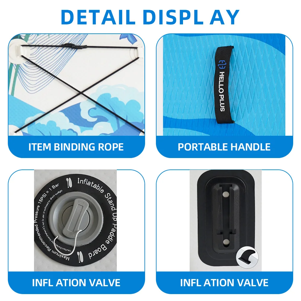 Versatile Use: This inflatable paddle board is perfect for a variety of water activities including surfing, racing, fishing, and yoga.