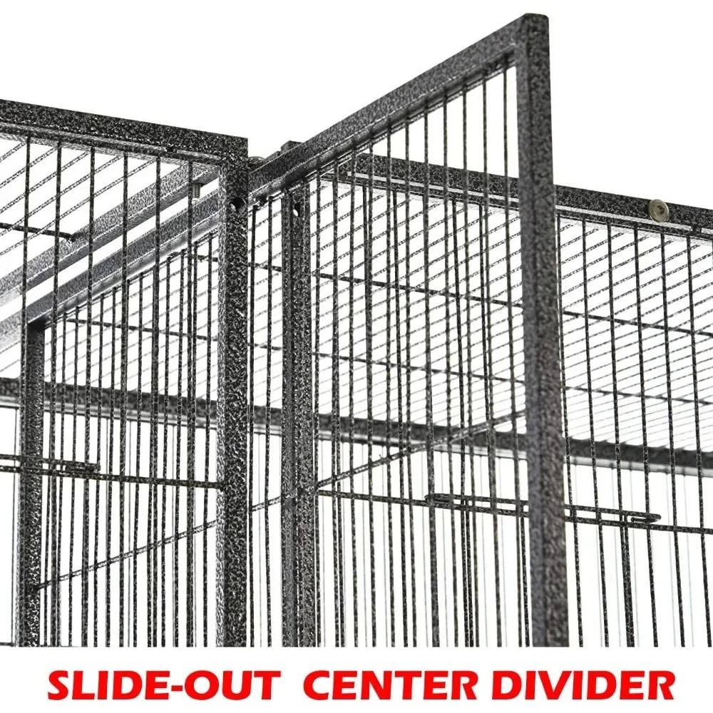 【LARGE and Durable Double Flight Breeding Bird Cage With Center Divider】Able to Use As One Single Extra Large Cage By Remove the Center Divider. Durable Wrought Iron Frame Construction; Overall Size With Stand: 52″ Length x 17″Depth x 54″Height.