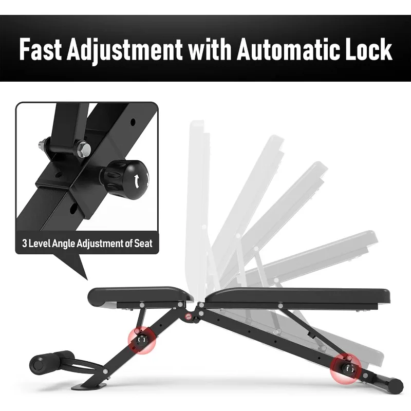 - 【Adjustable Bench】6 back positions & 3 seat positions to fit your Full Body Workout,you just pull the FAST BOLT,adjust the place which fit yourself and automatic lock! Safety.