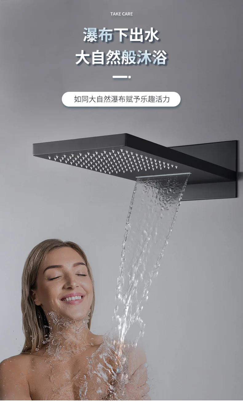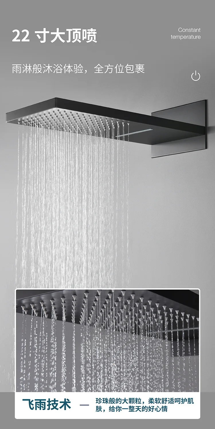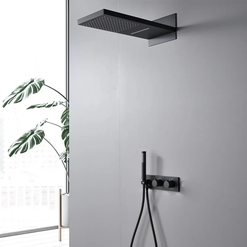 Luxury Smart Bathroom Shower Mixer System Ducha Black Wall Mounted Brass Hot Cold Banheiro Hand Shower Thermostatic Faucet Tap