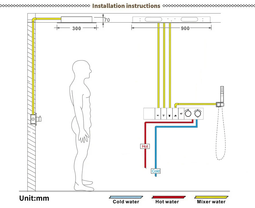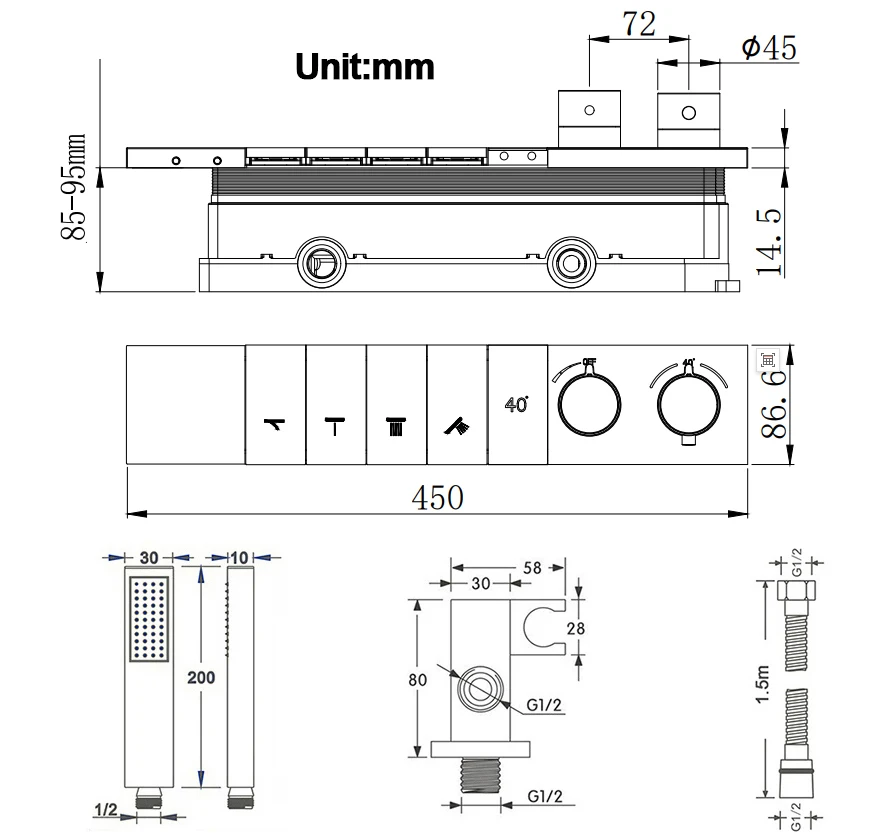 - Concealed Shower Mixer Size: 450*86mm
