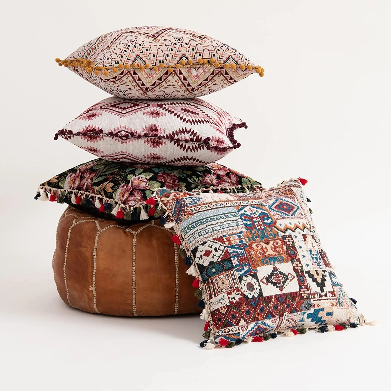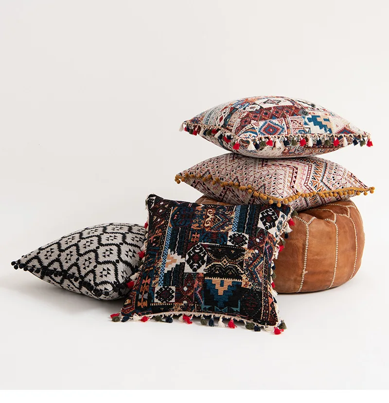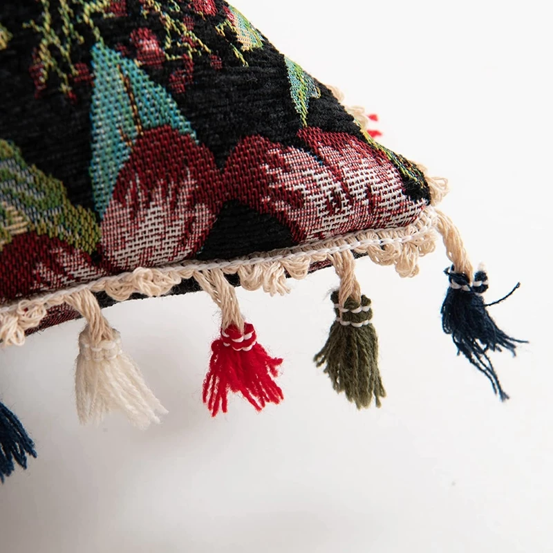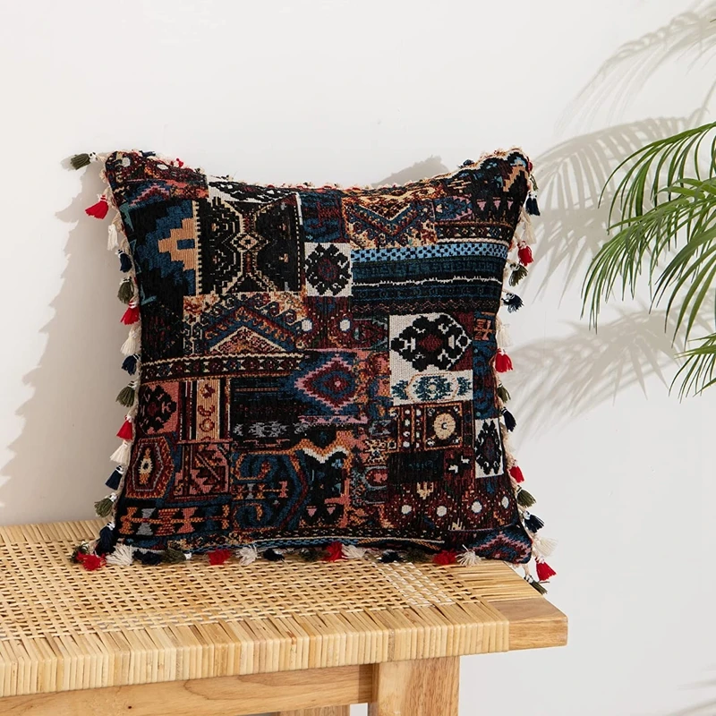 Vibrant bohemian style with colorful tassels on 4 sides to decorate home, sofa, couch, chair or patio