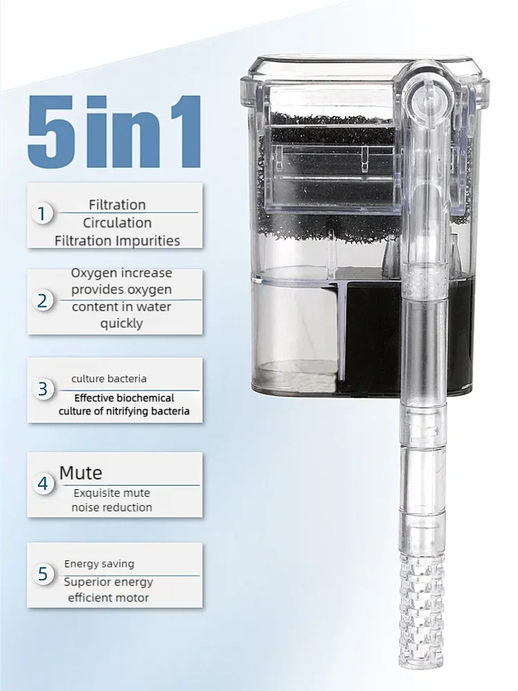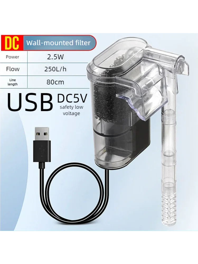 New Suspended Filter For Fish Tanks, Mini Filter, USB, 2.5W, 250H/L Suitable For Fish Tanks Below 30cm, Aquariums