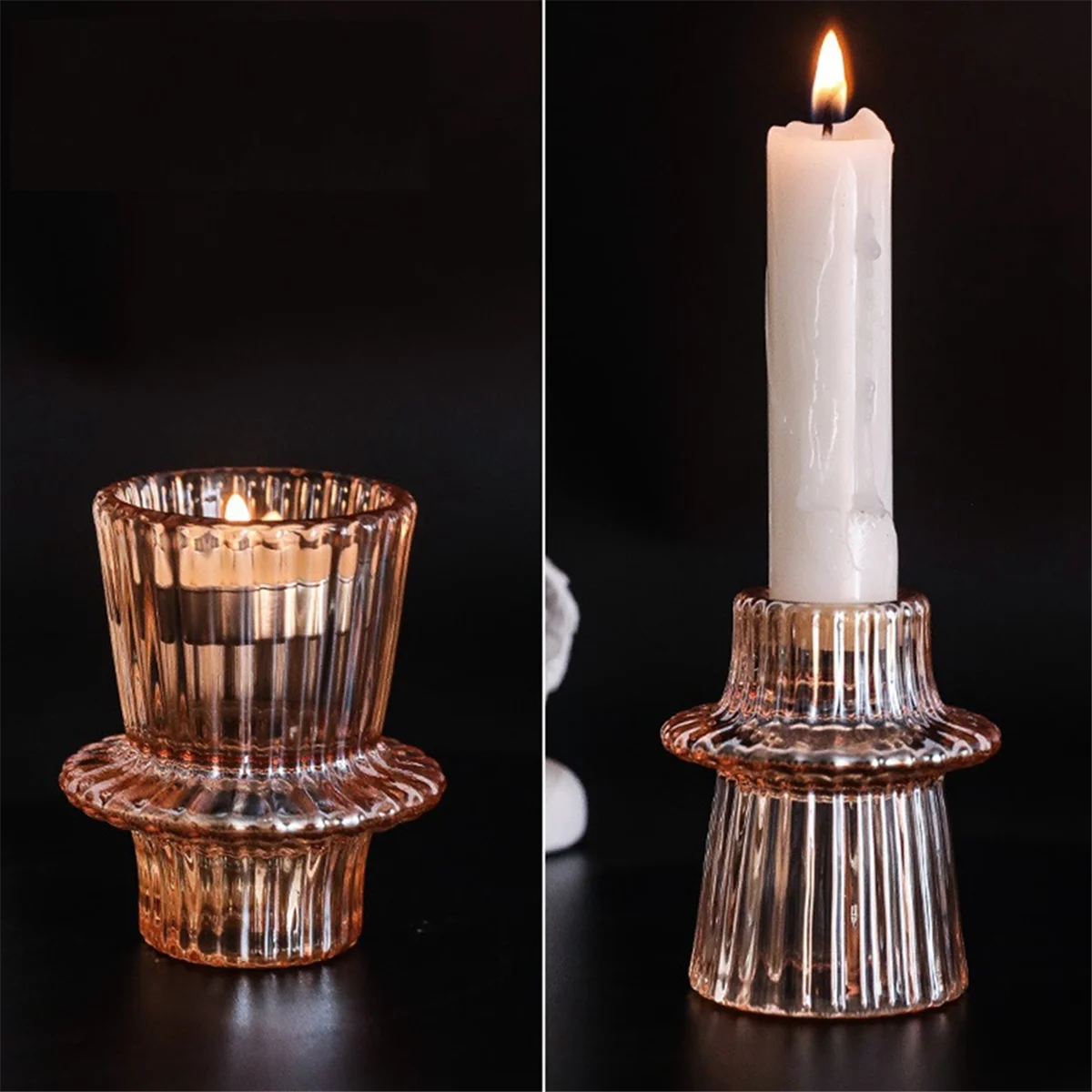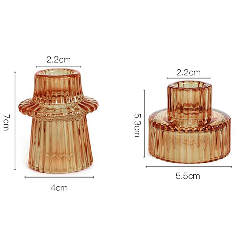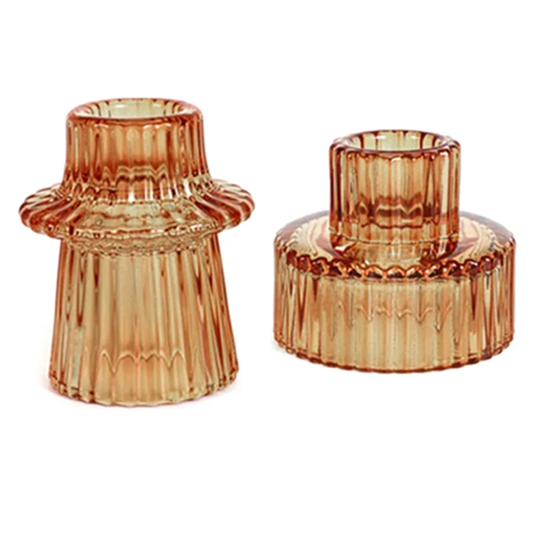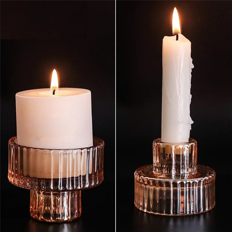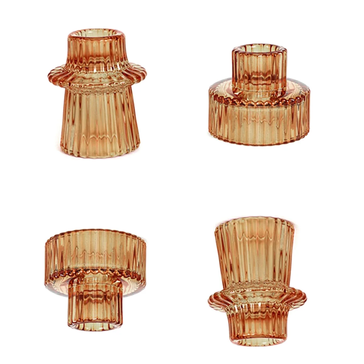 NOCM 4 Pieces Glass Candle Holders 2 Different Sizes Modern Fluted Design Candle Holder For Wedding Decor B