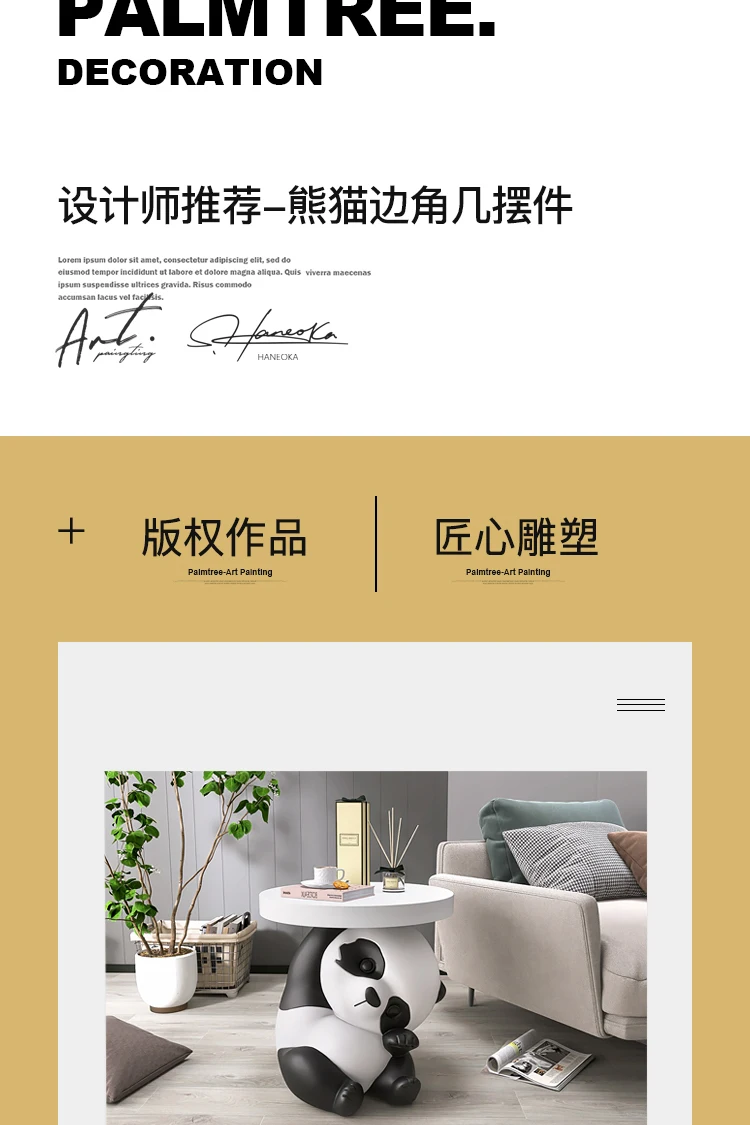 【Product Name】Panda statue side table floor decoration