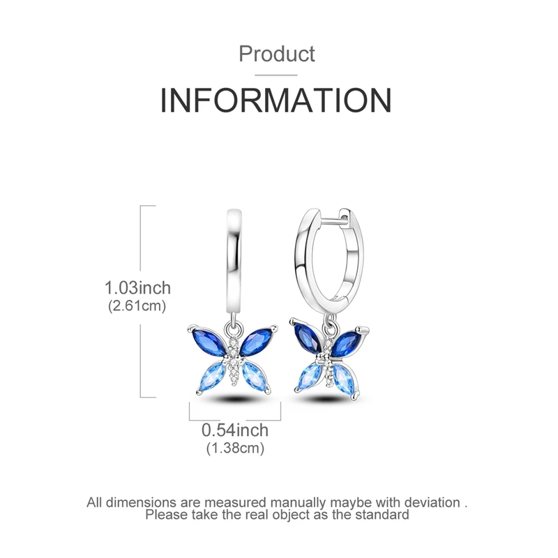 Original 925 Sterling Silver Blue Zirconium Butterfly Earrings Colored Hoop Earrings Women Female Party Fine Earring Jewelry