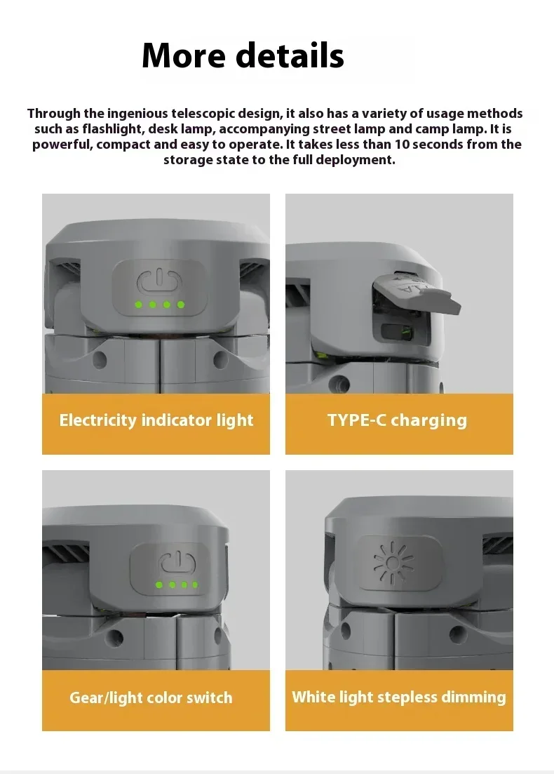 Camping Light Mode :Three light flaps structure can be adjusted by 720°.