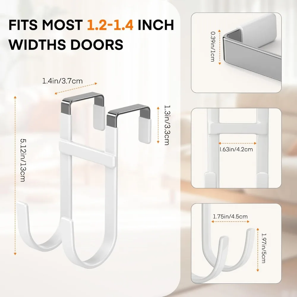 - Soft Rubber-Coated: The door organizer hooks are built with soft rubber, non-slip and smooth surface keep the hooks in place without swinging and protect the doors or clothing from scratch