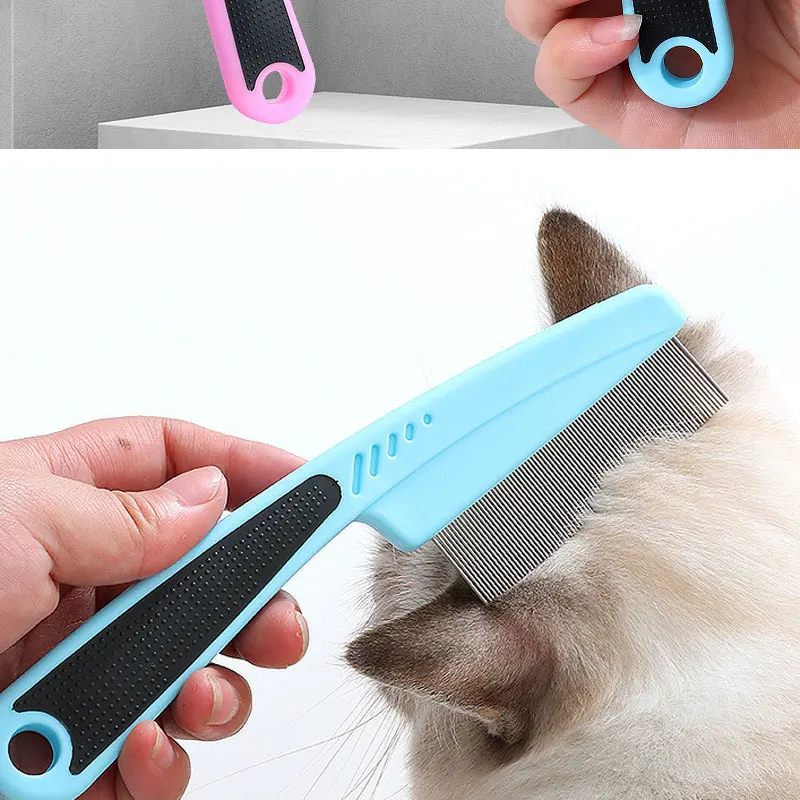 Pet Animal Care Long-handled Pet Comb Flea Comb for Cat Dog Stainless Steel Comb Deworming Opening Knots Dog Cat Grooming Comb