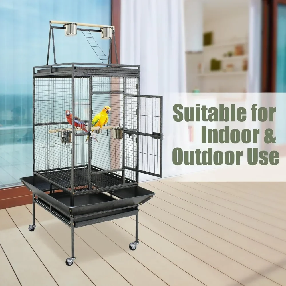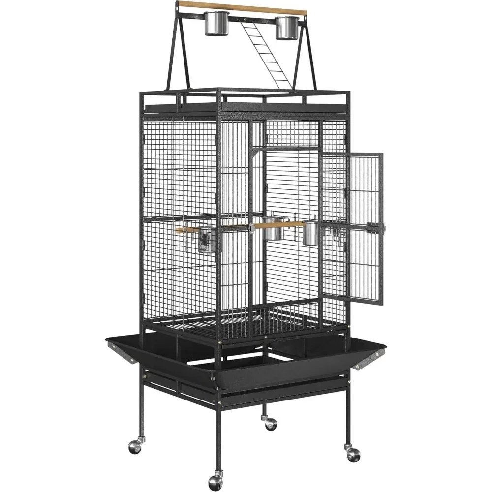 【Solid Construction】– The bird cage is made of strong and steady metal main frame, which could make this cage more durable and solid. Non-toxic coated finish,Durable metal wire bar to secured large birds