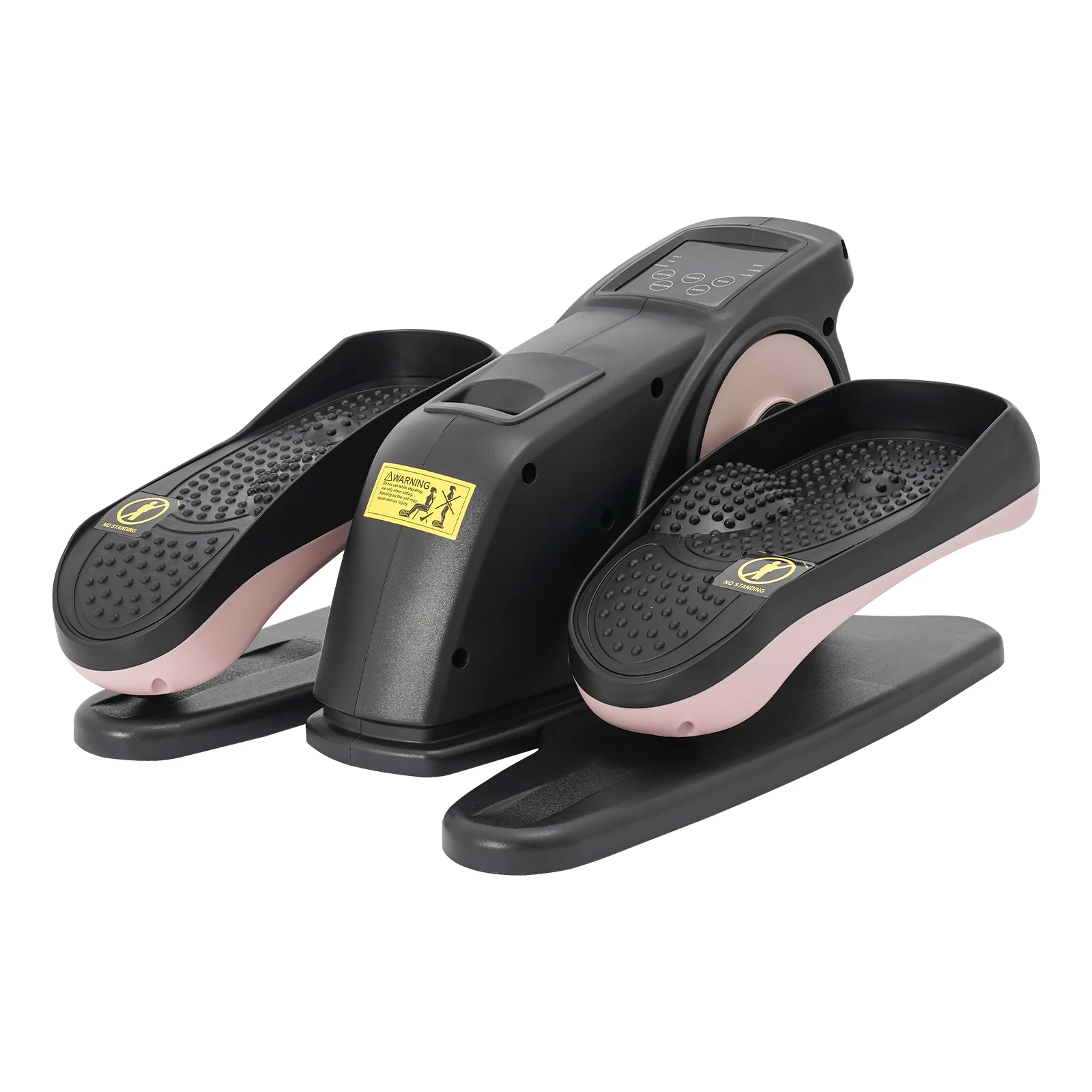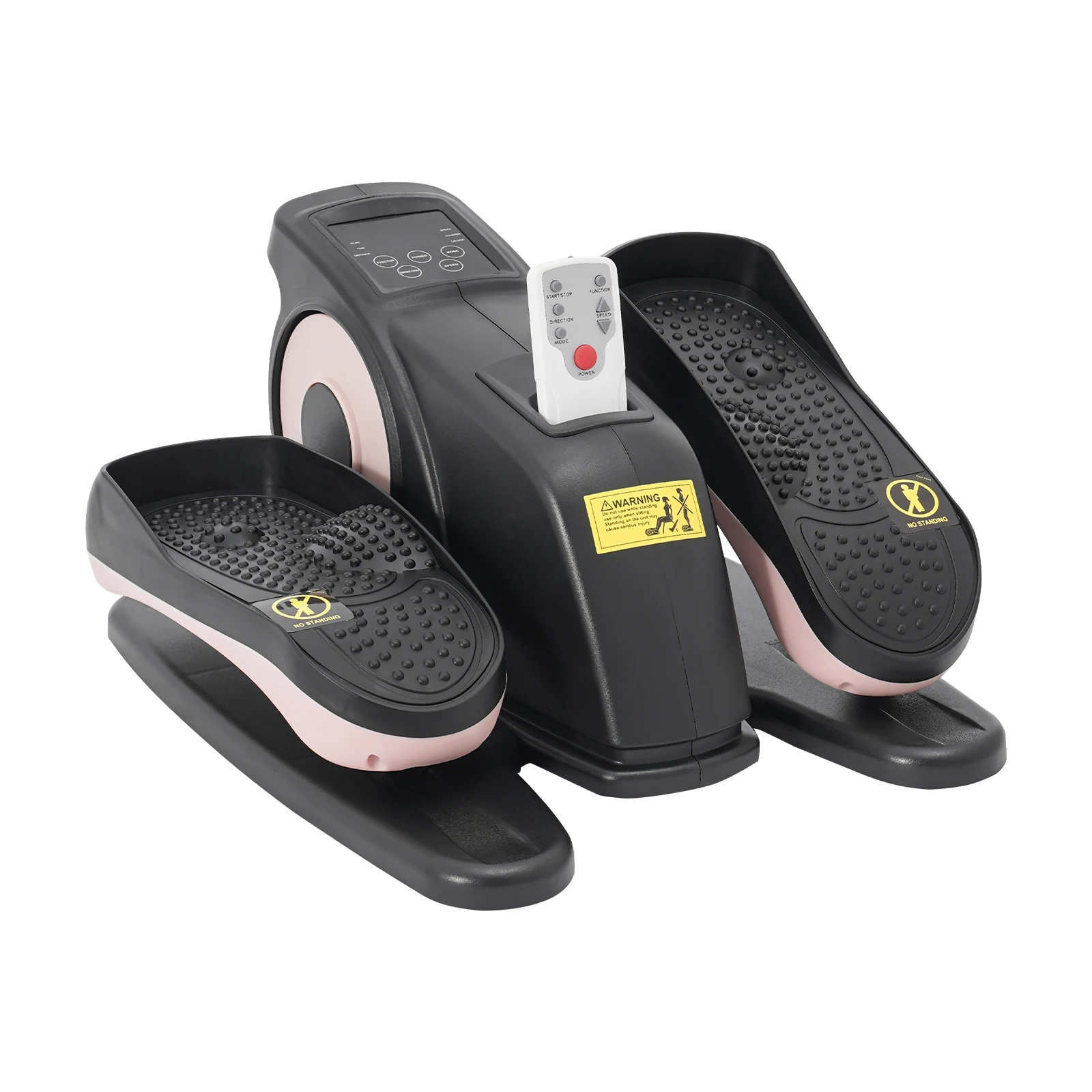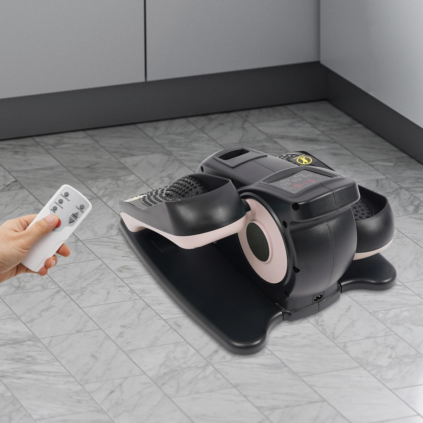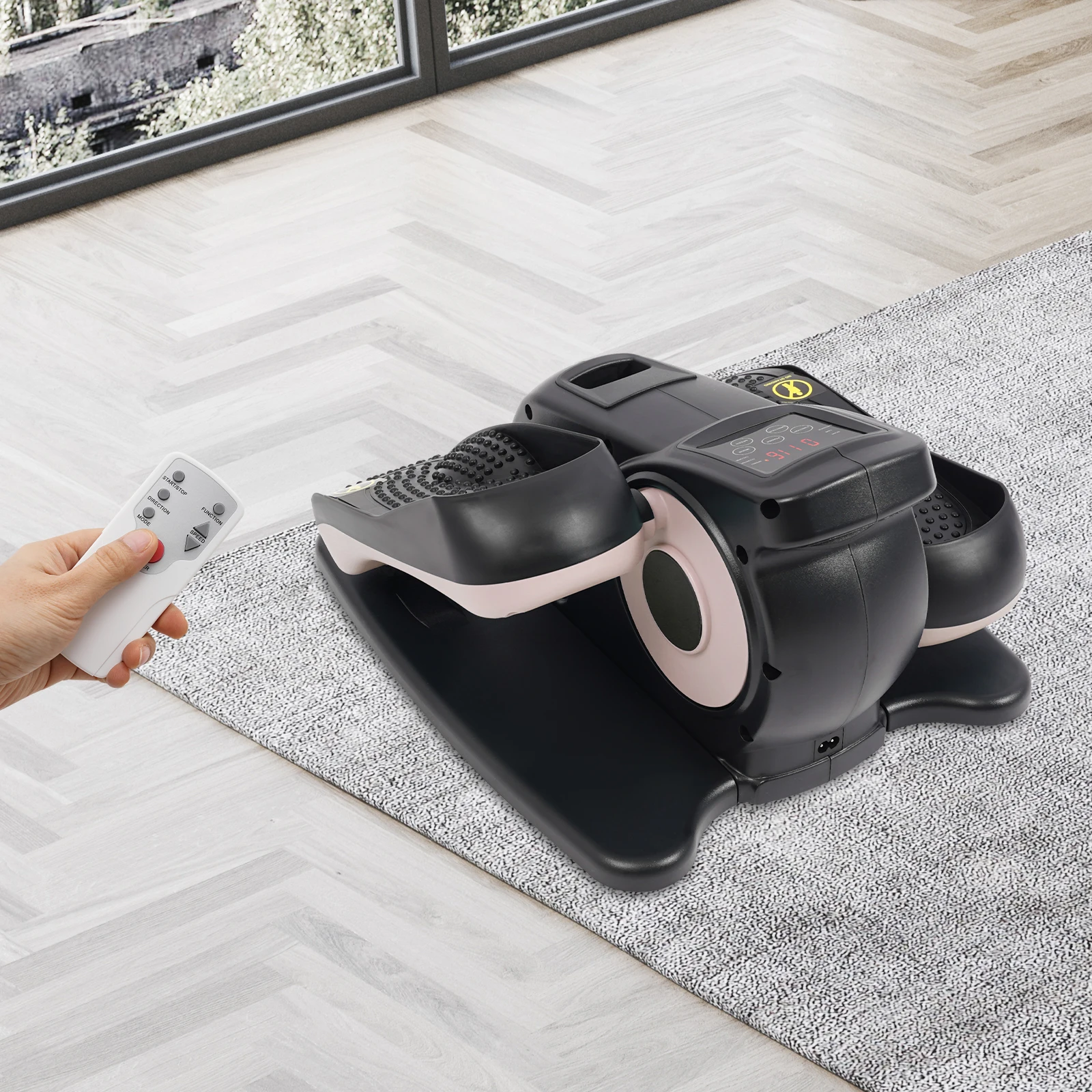 This is a multifunctional portable pedal exerciser for the legs. Its compact size makes it suitable for both home and office use. The LCD shows information such as time, counter, and speed. The anti-slip pedals and safety warning signs to ensure user safety, and remote control for easy setting adjustments. In short, it is a well-designed, fully functional, and safety-focused exerciser that can help you effectively exercise your legs.