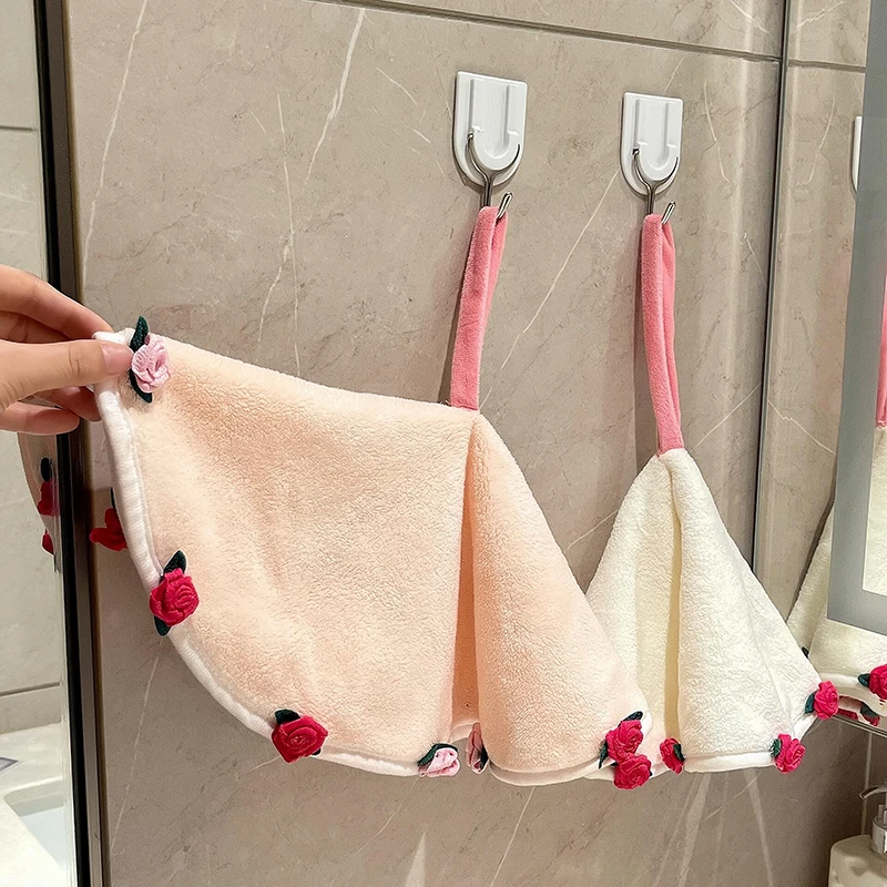 High aesthetic appeal: This hand towel is designed with rose lace and