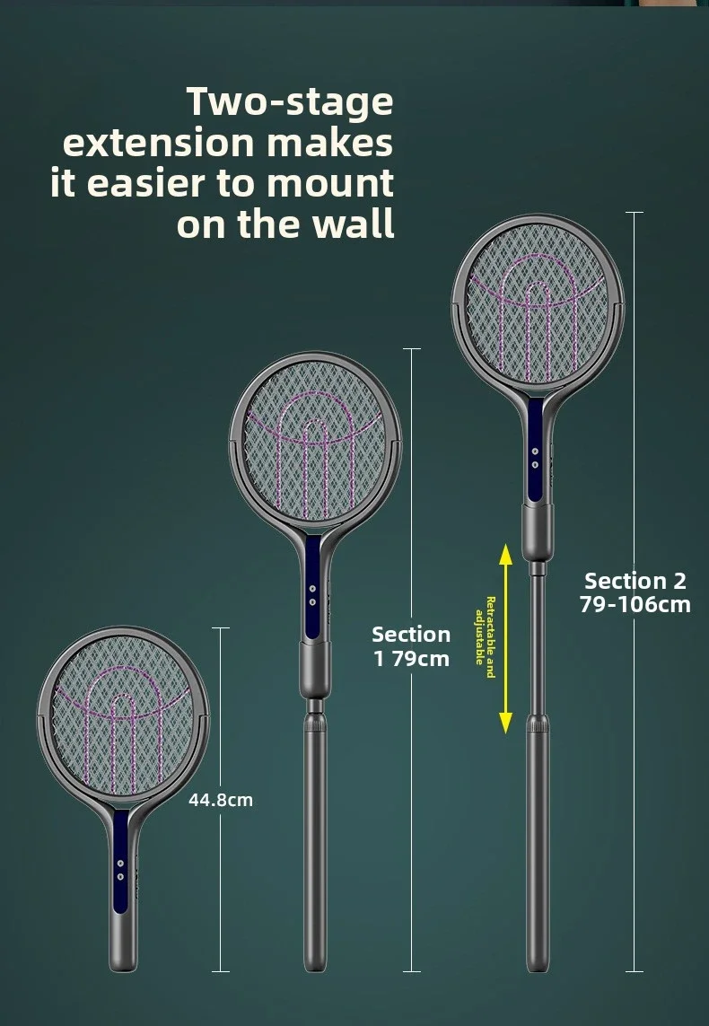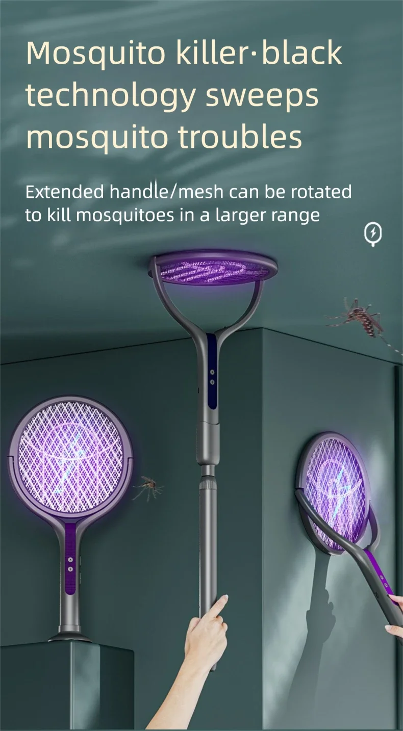 1. Innovative rotating head: Our electric fly swatter adopts a rotating head design, making it possible to easily capture insects from all angles and surfaces (including walls). You can also lock the rotating head so it swings through the air to catch flying insects, just like a traditional fly swatter.